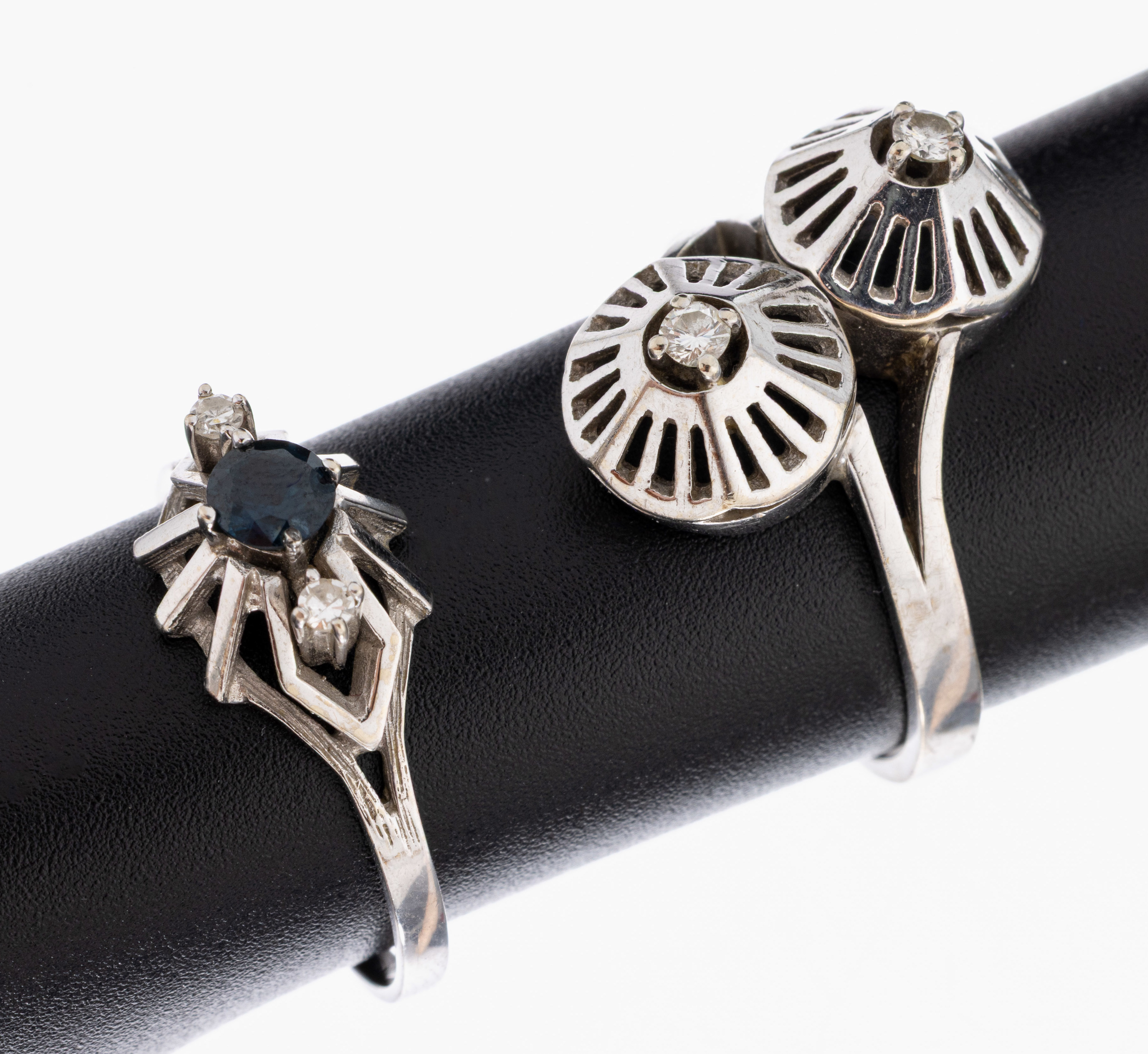 zus. ca. 0.10 ct Weiß/si, RW 60, ca. 6.7 g, und 1 x rundfacett. Saphir ca. 0.25