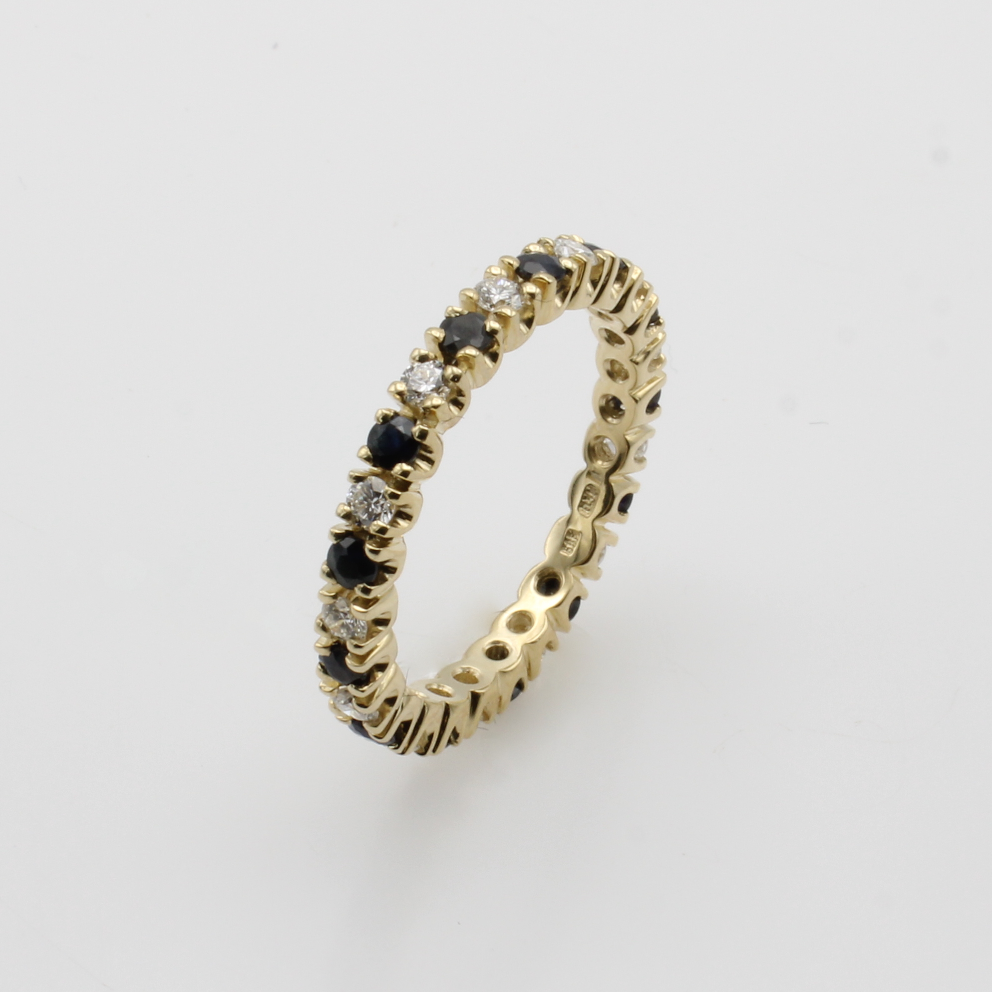 Memoryring mit Brillanten und Saphiren, GG 585/000, 13 Brill. zus. ca. 0.50 ct Weiß/si, RW ca. 56