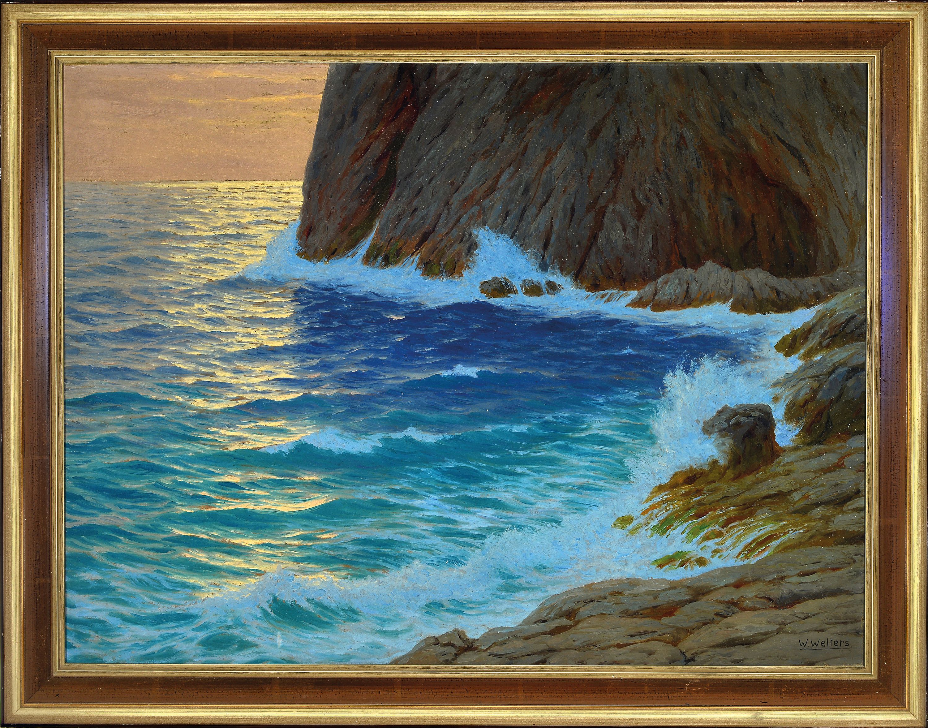 Willem Welters, 1881 Rotterdam-1972 Bordighera, Küstenbrandung im Morgenlicht, rechts