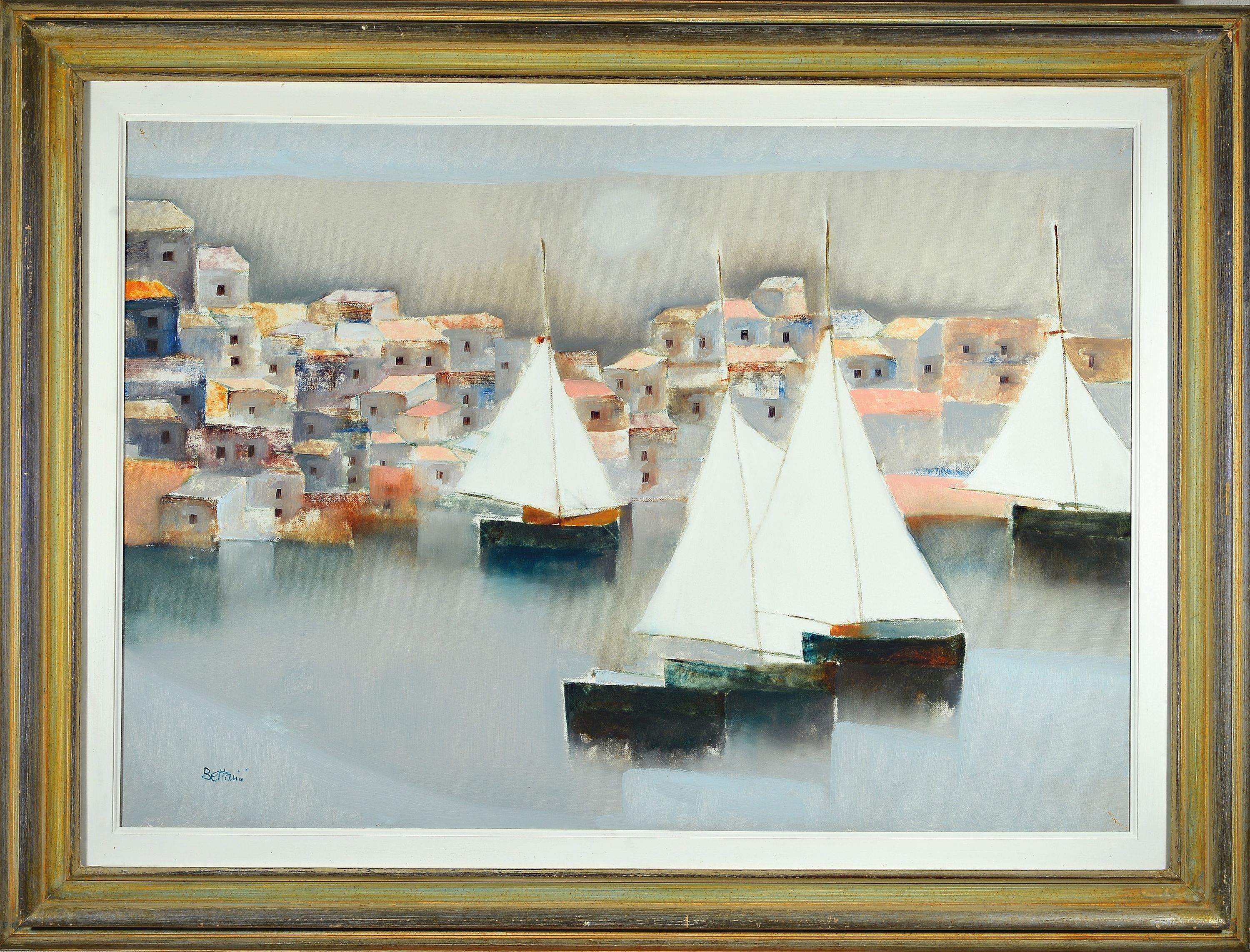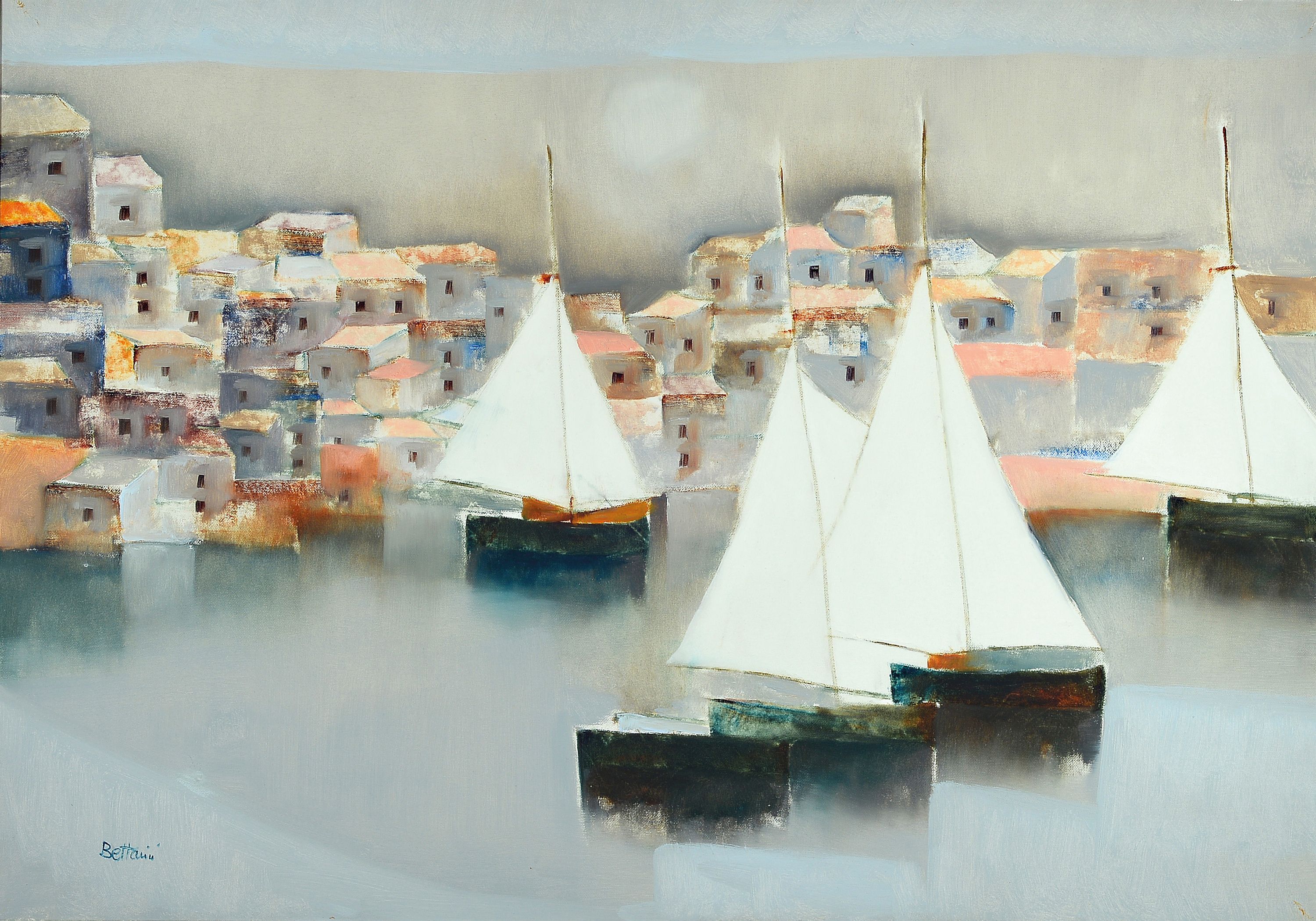 Lido Bettarini, geb. 1927, Pomino-Rufina, Seeblick, südliche Hafenansicht mit Segelbooten,