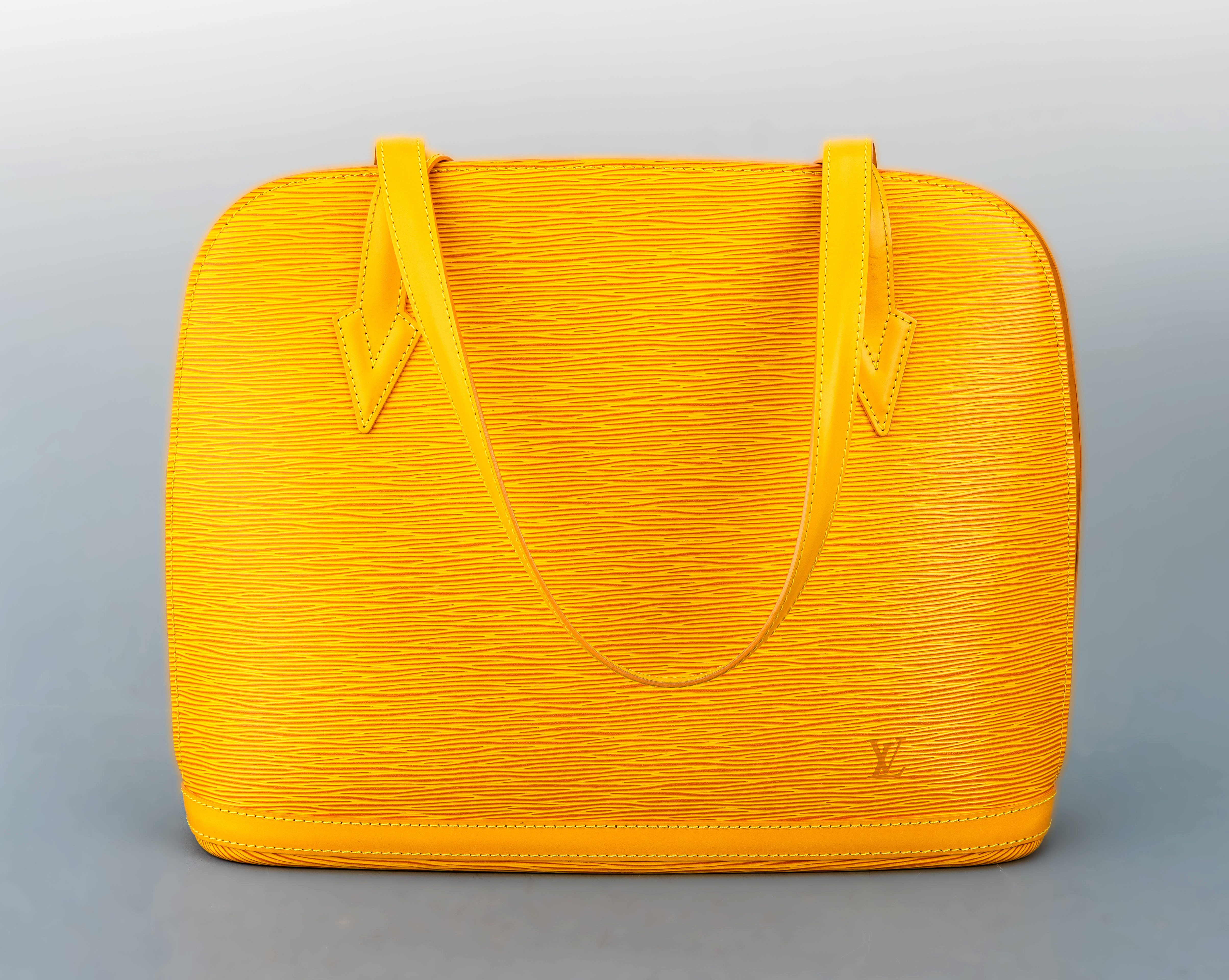 LOUIS VUITTON Handtasche, "Lussac", Epileder in Gelb, 2 Schulterriemen, innen violettfarb.