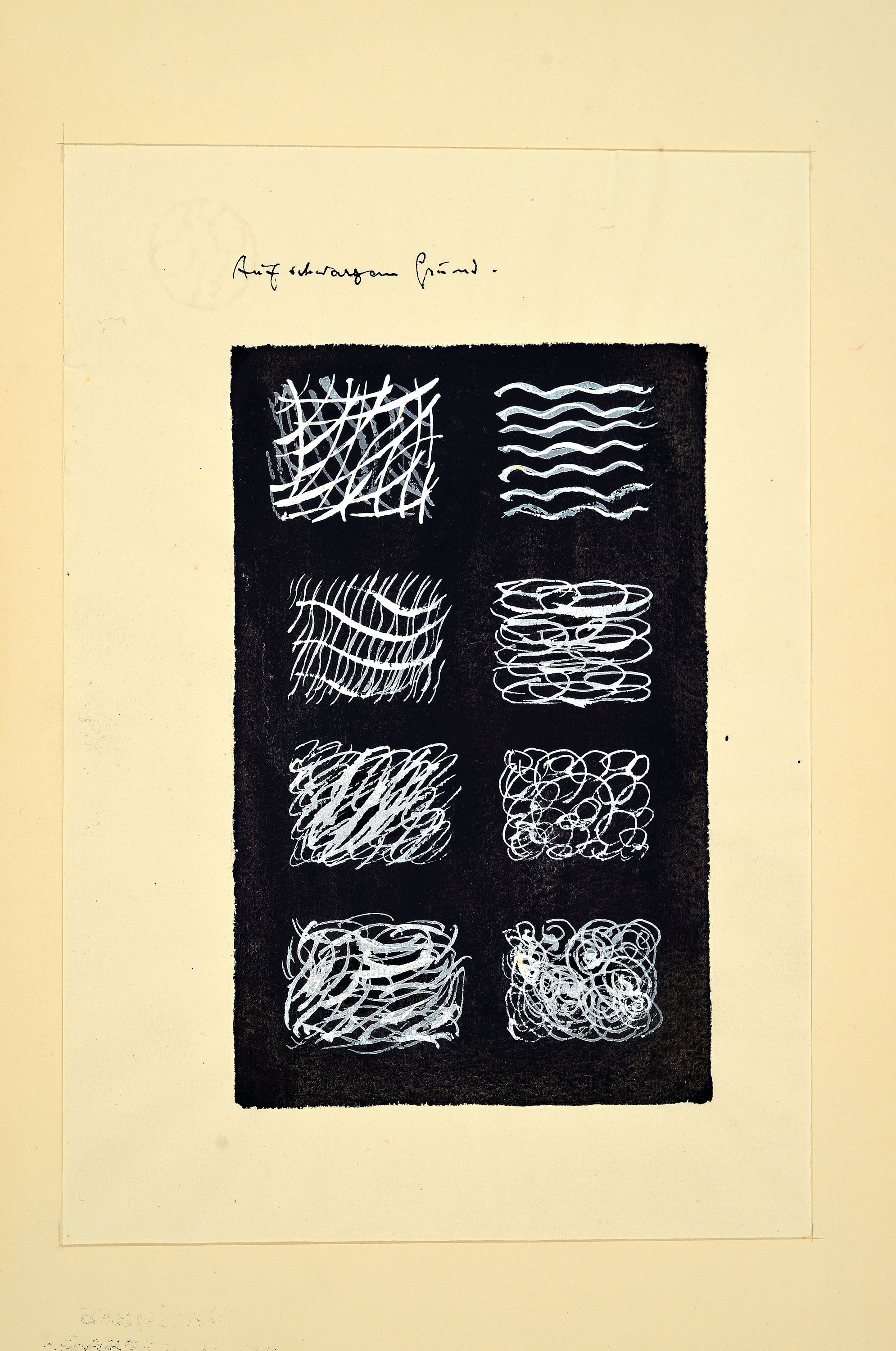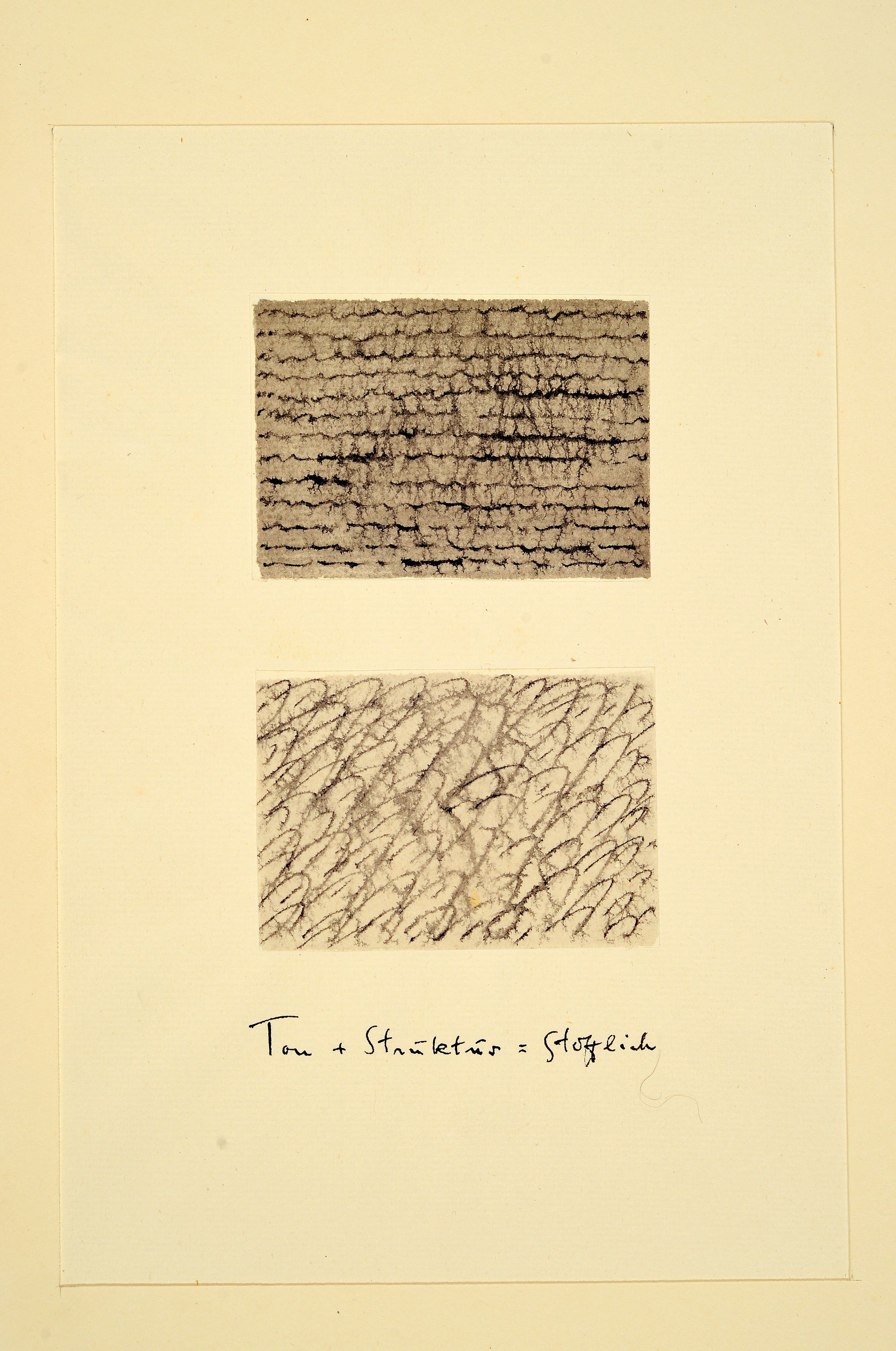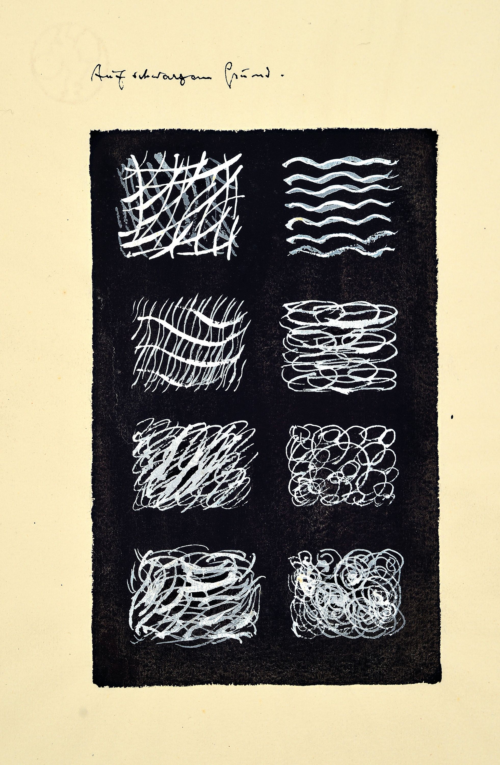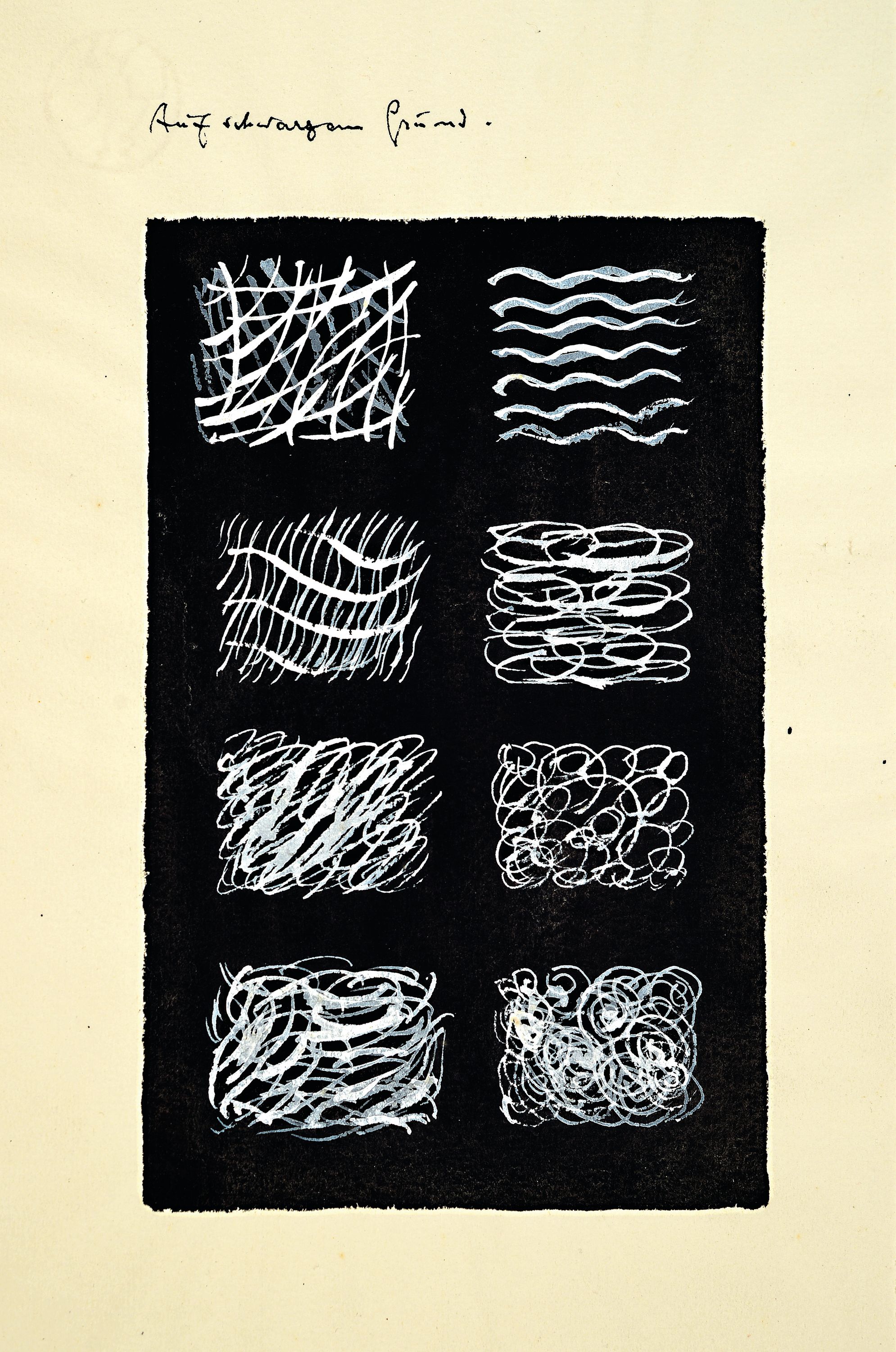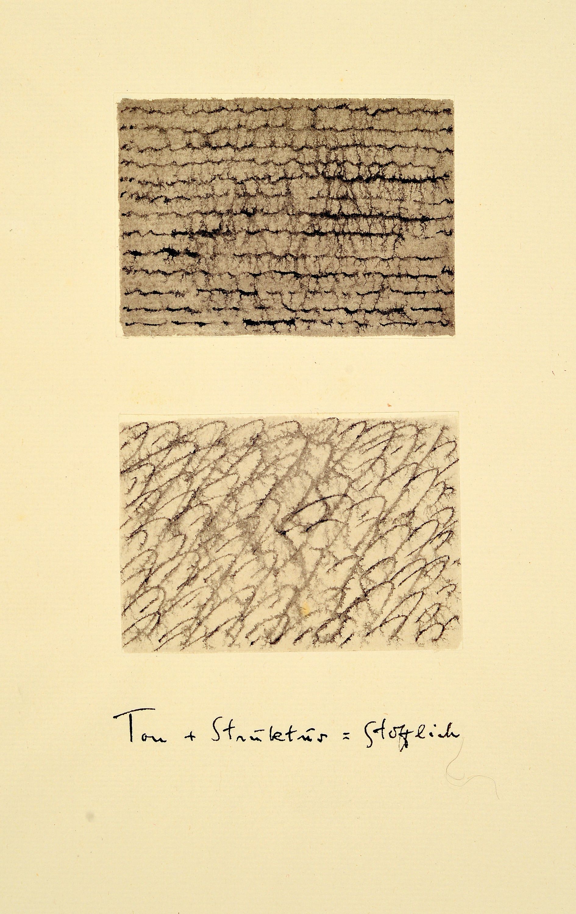 schwarzem Grund", "Ton + Struktur = Stofflich", 1x unleserlich 1x unbezeichnet, Strukturstudien,