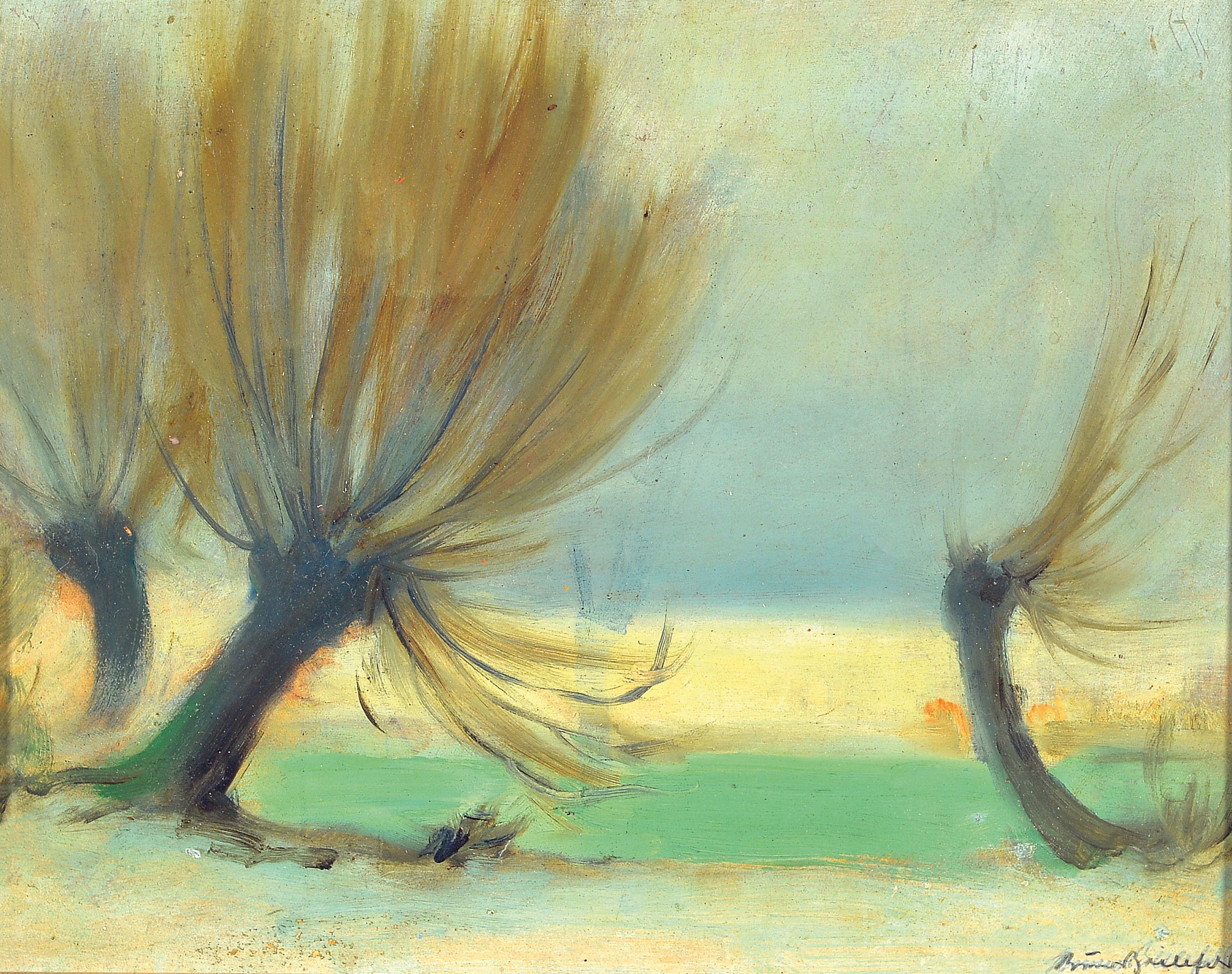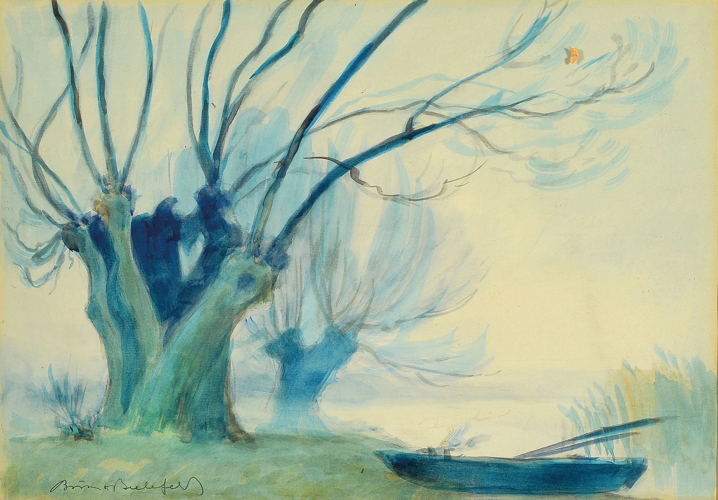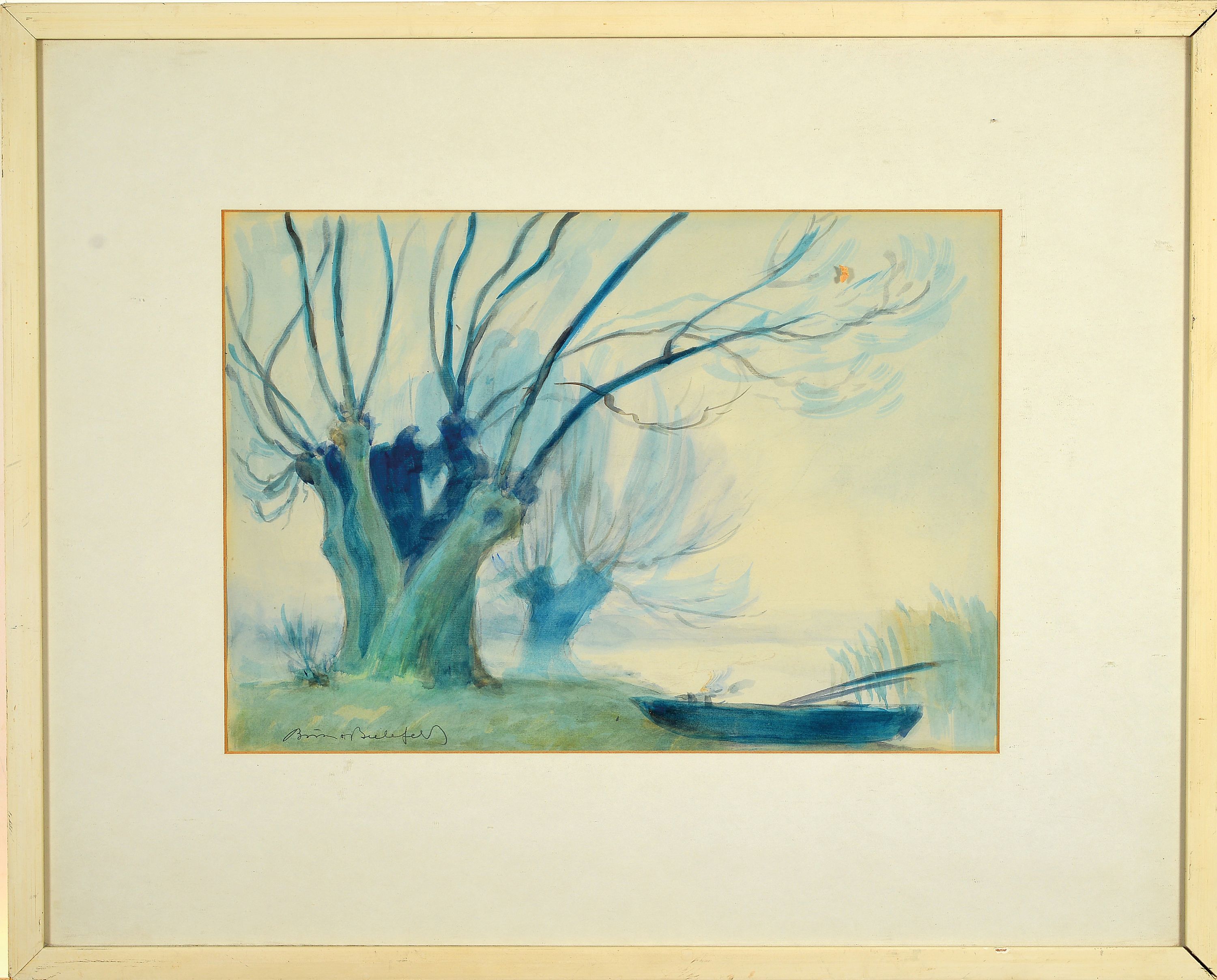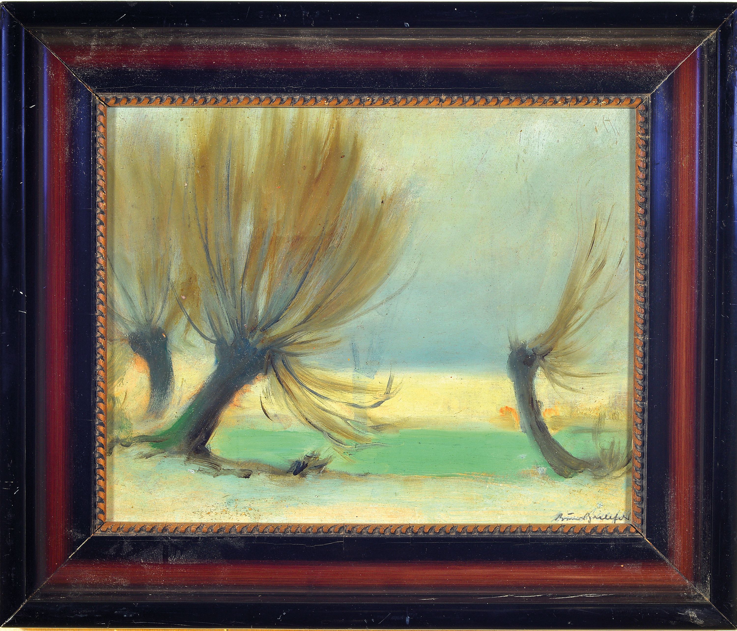 Bruno Bielefeld, 1879 Blumenau-1973 Berlin-Steglitz, 2 Werke: Auenlandschaften mit Kopfweiden, 1x Aquarell, 1x Öl/Platte, je signiert, Rahmen 35x41/42x52 cm