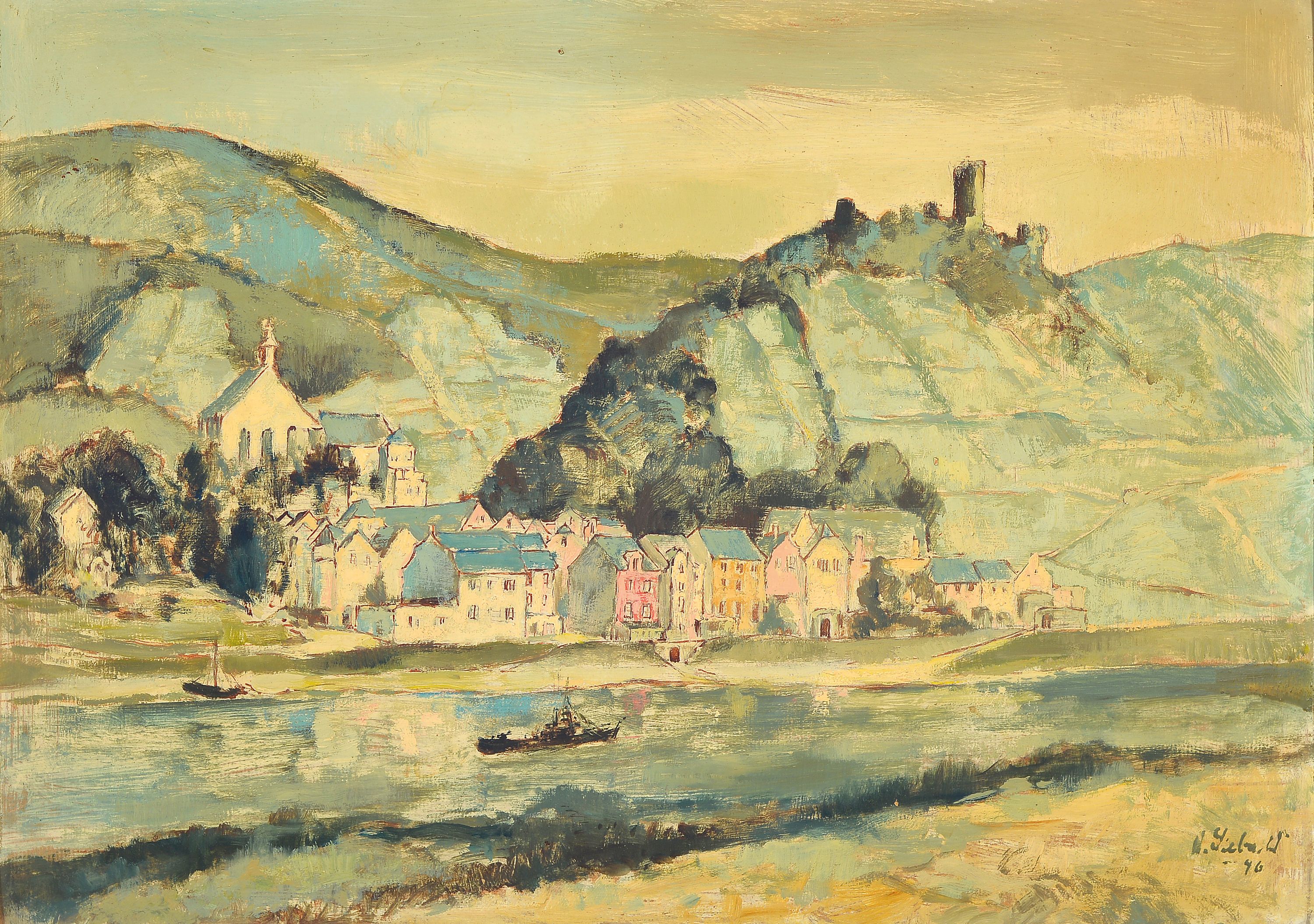 Unidentified artist, dated 1946, Beilstone on the Moselle, signed and dated lower right, oil/cardboard, frame 45x60 cm
