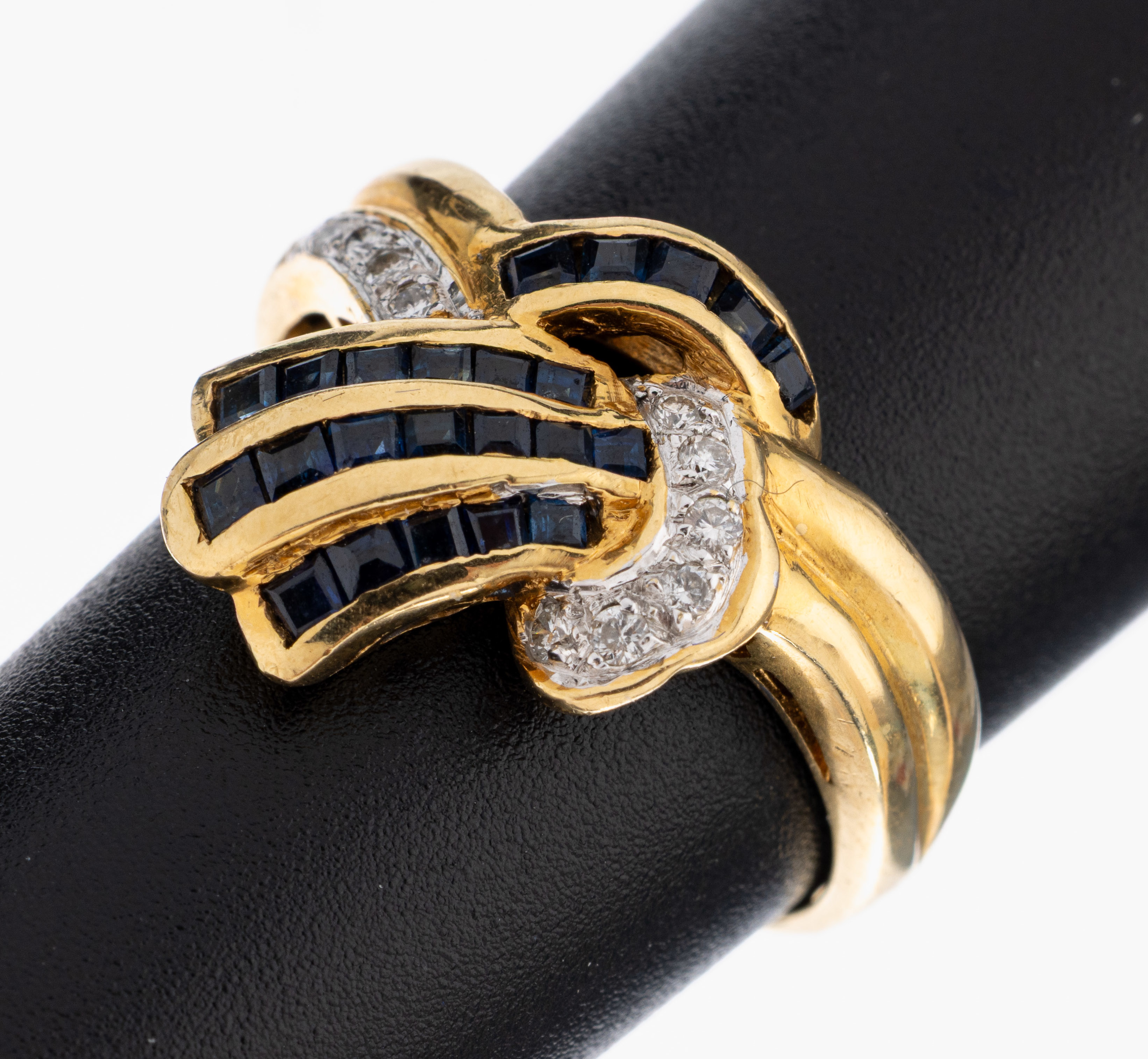 18 kt Gold Saphir-Brillant-Ring, GG 750/000, 23 Saphir-Carrees zus. ca. 0.35 ct,