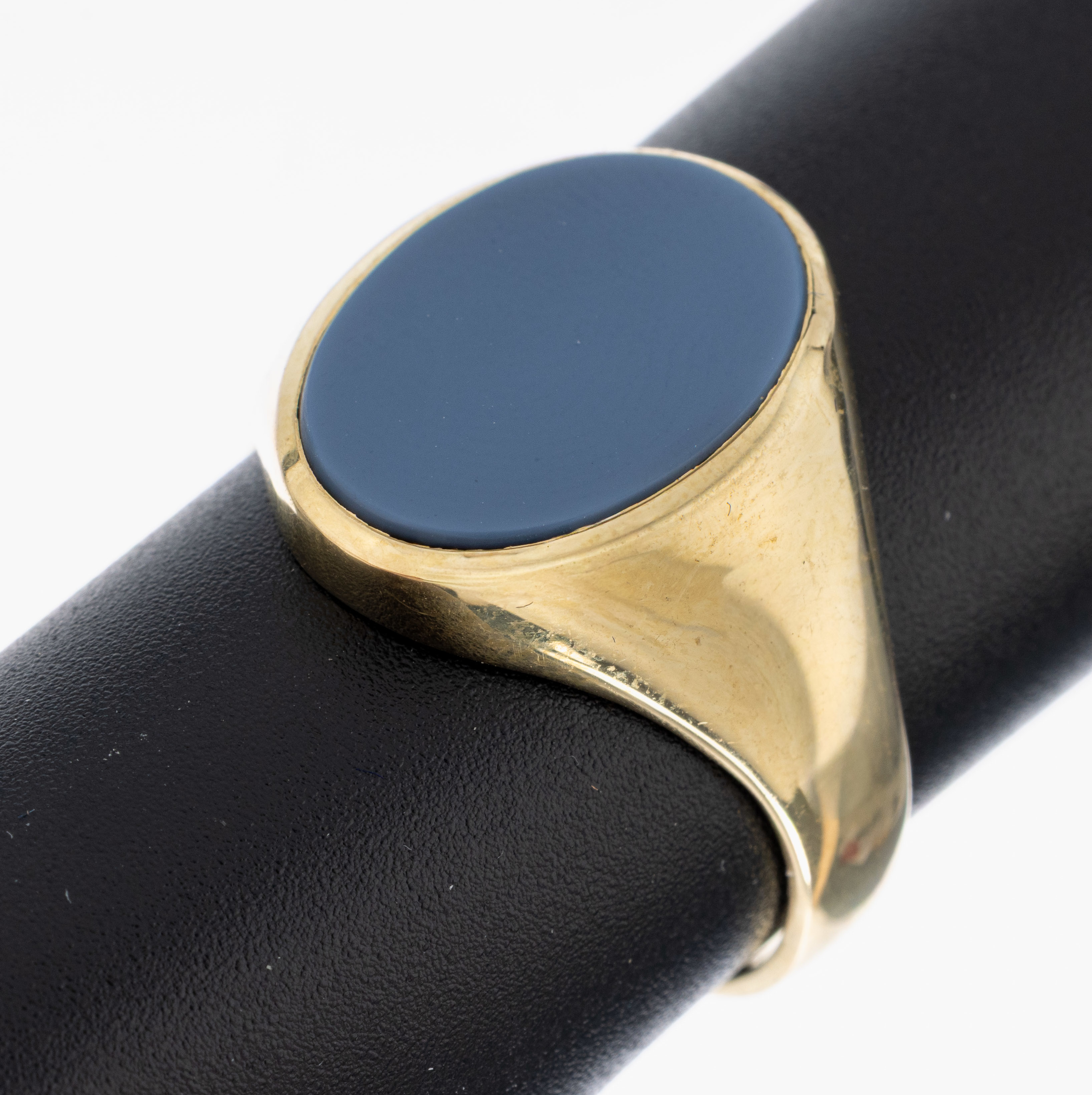 14 kt Gold Lagenachat-Siegelring, GG 585/000, ovale Lagenachat-Platte, RW 64, ca. 6.9 g