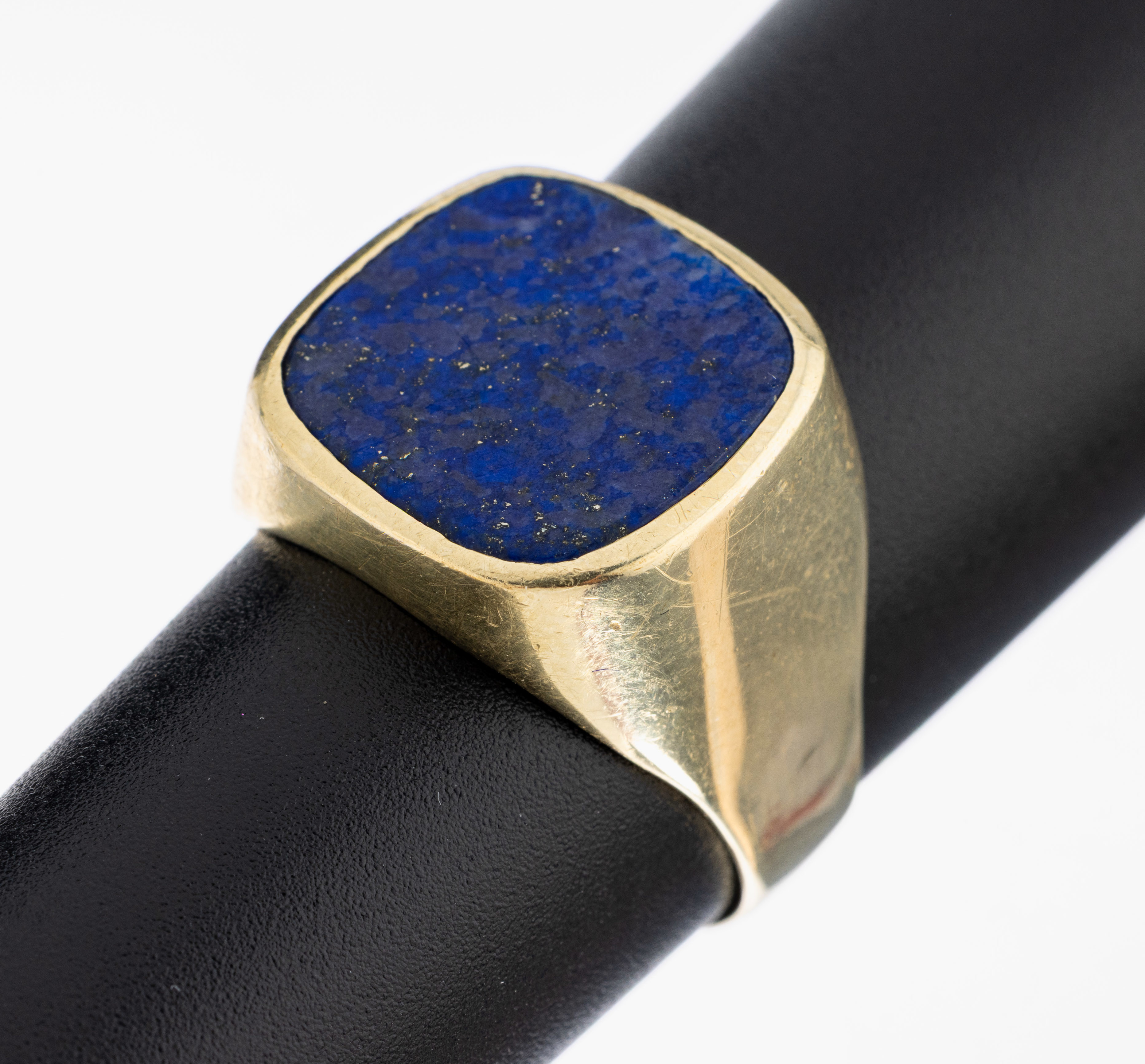 14 kt Gold Lapislazuli-Siegelring, GG 585/000, Lapislazuli-Platte mit Pyrit- Einschlüssen,