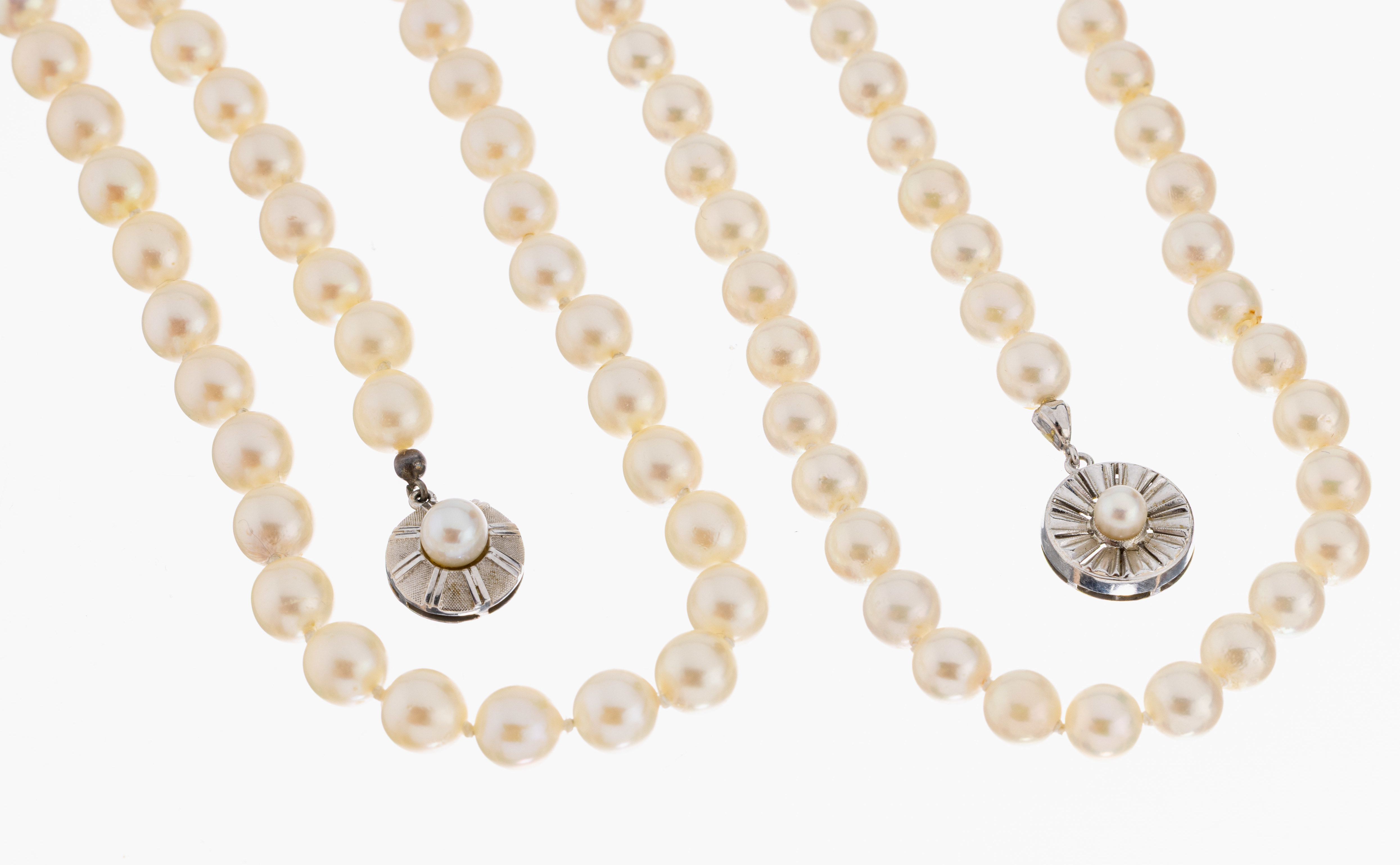 D. ca. 7.1-7.3 mm, L. ca. 80cm, und 1 x Akoyazuchtperlen, D. ca. 6.6-6.8 mm, L. ca.