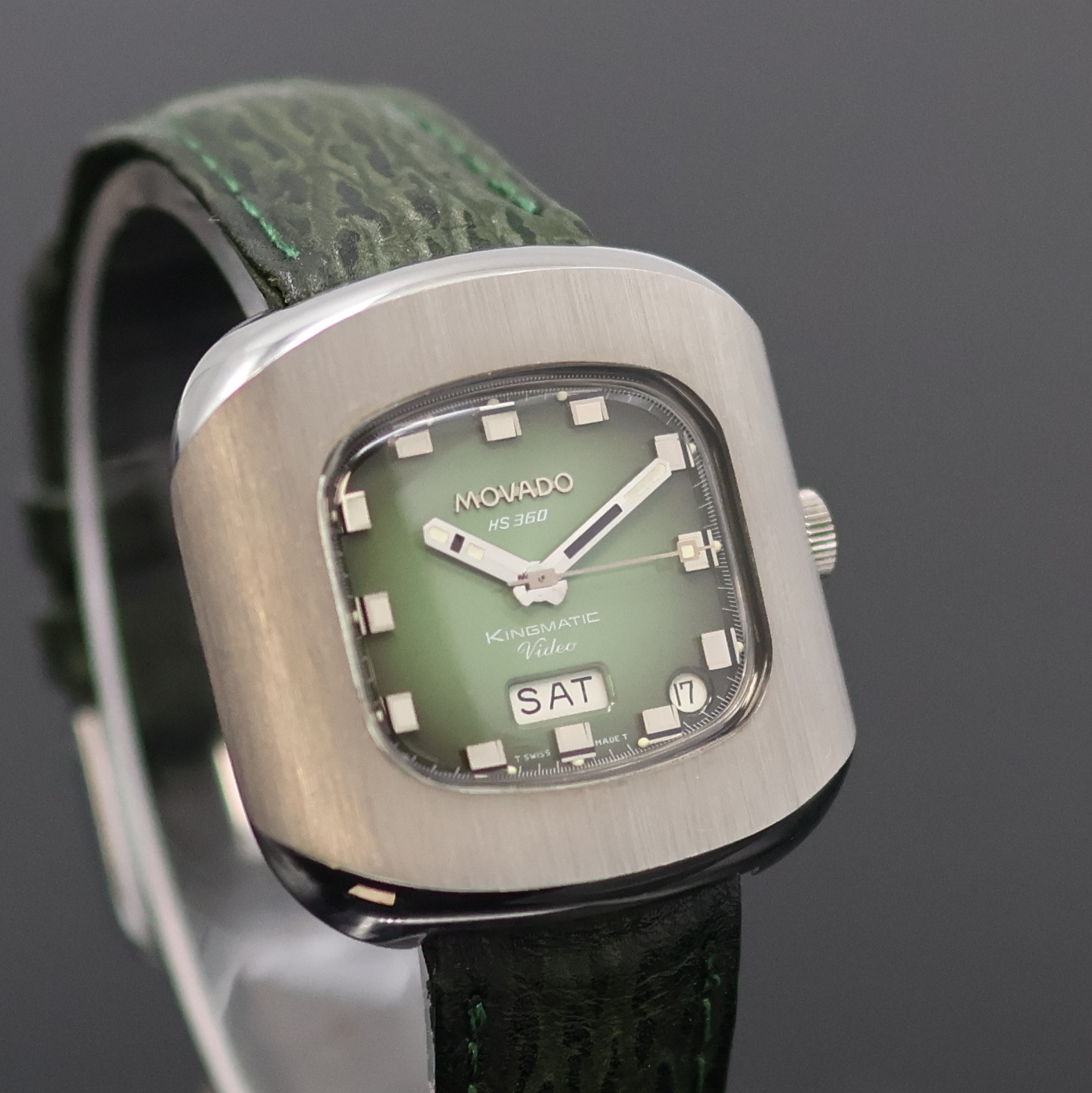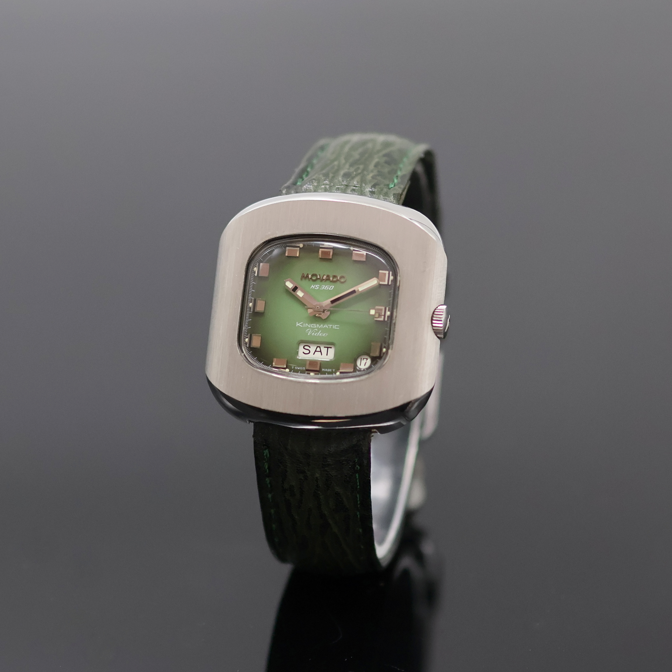 MOVADO Kingmatic Video HS 360 Armbanduhr in Stahl, Schweiz um 1975, Automatik, matt.