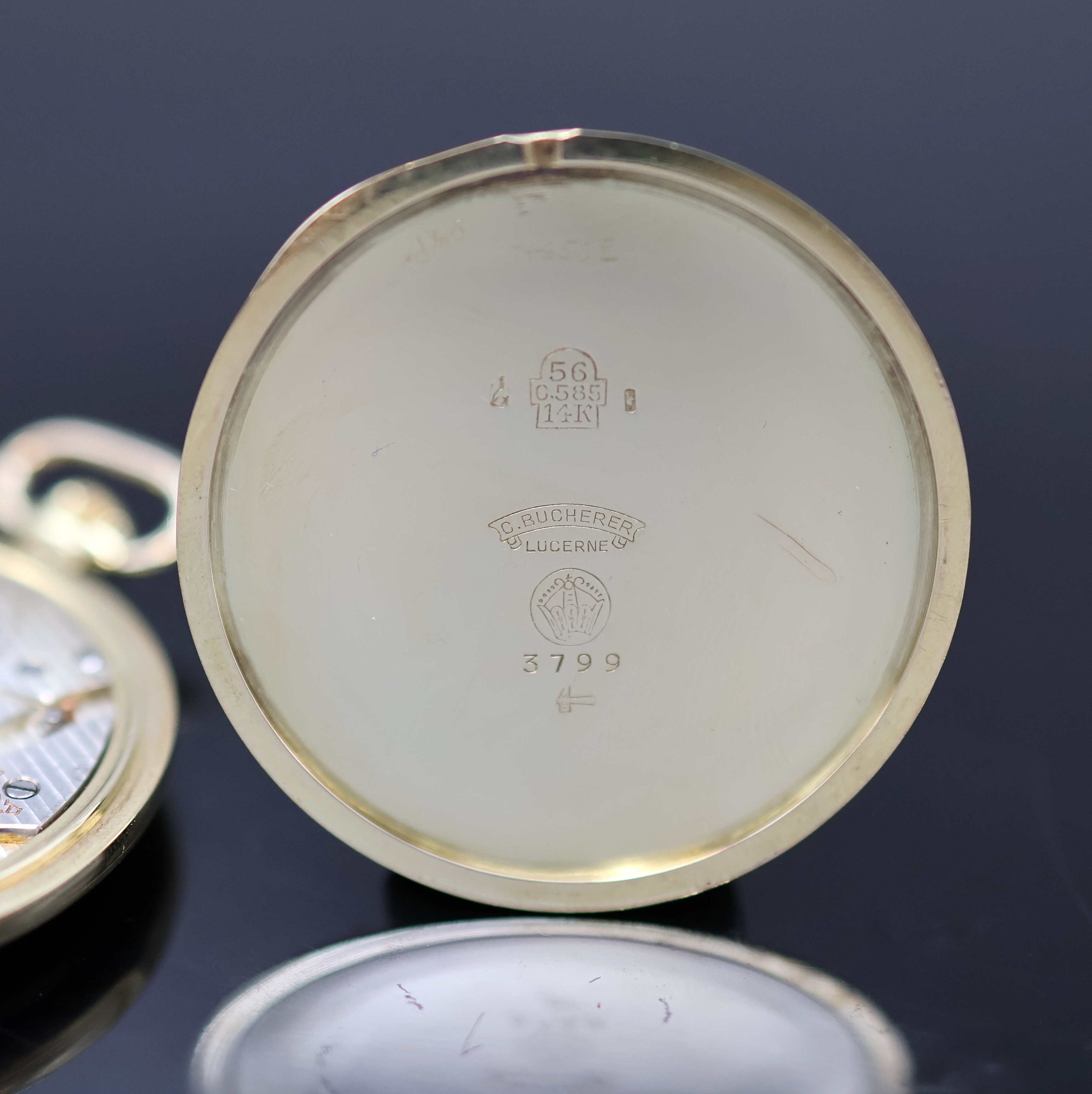 BUCHERER Chronometer offene Taschen-/Frackuhr in GG 585/000 mit Chatelain in GG 585/000,