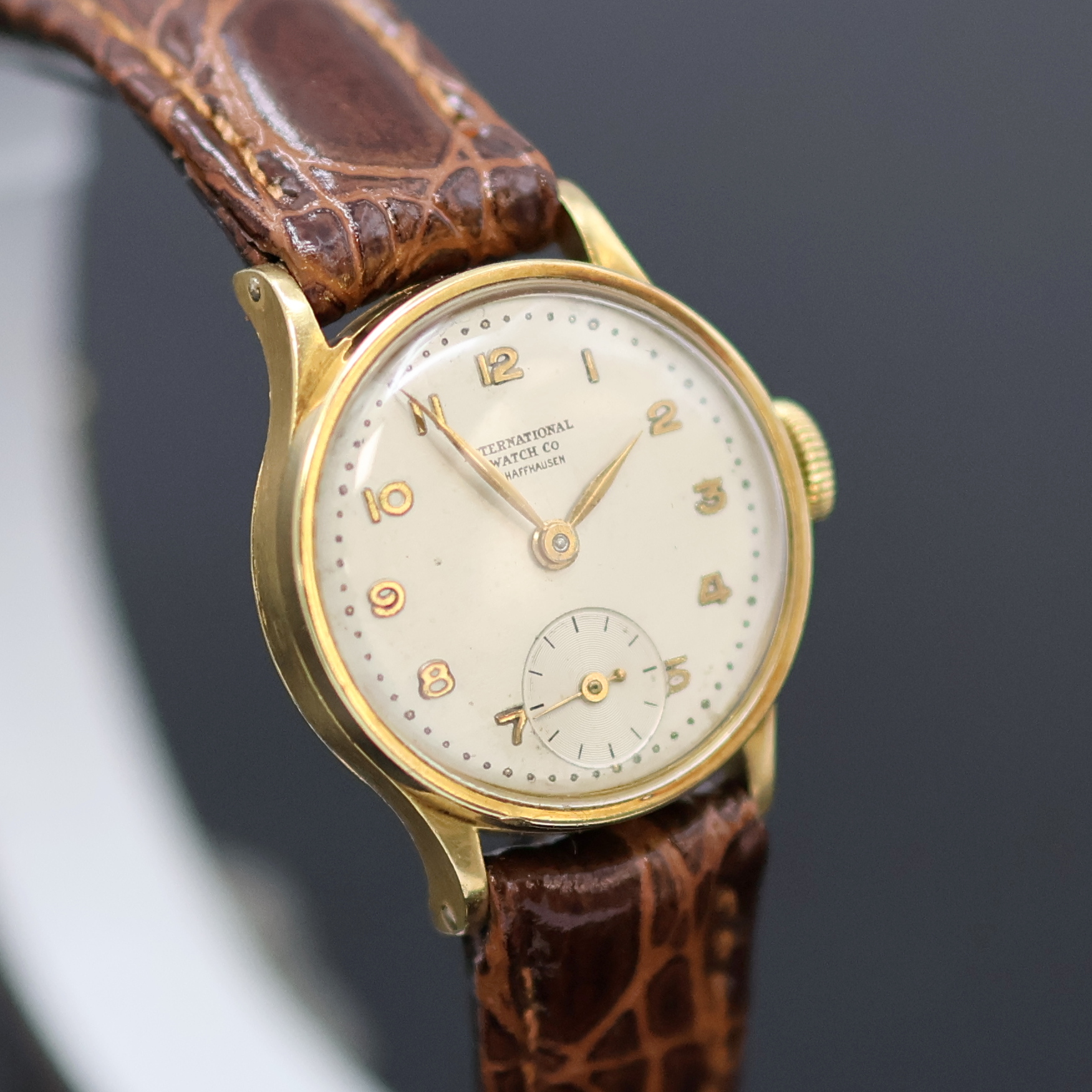 IWC Damenarmbanduhr in GG 750/000, Schweiz um 1950, Handaufzug, Boden u. Glasrand