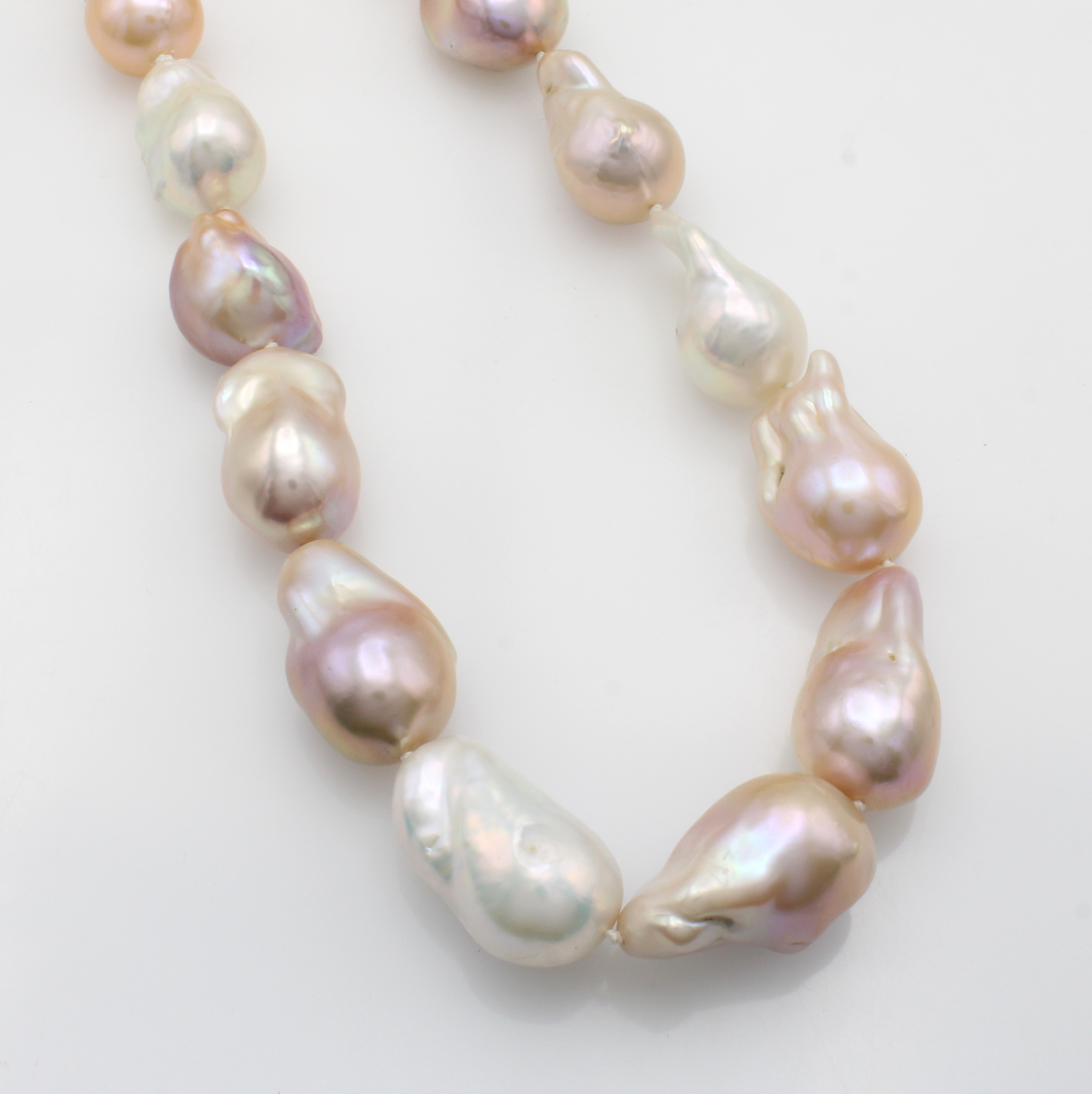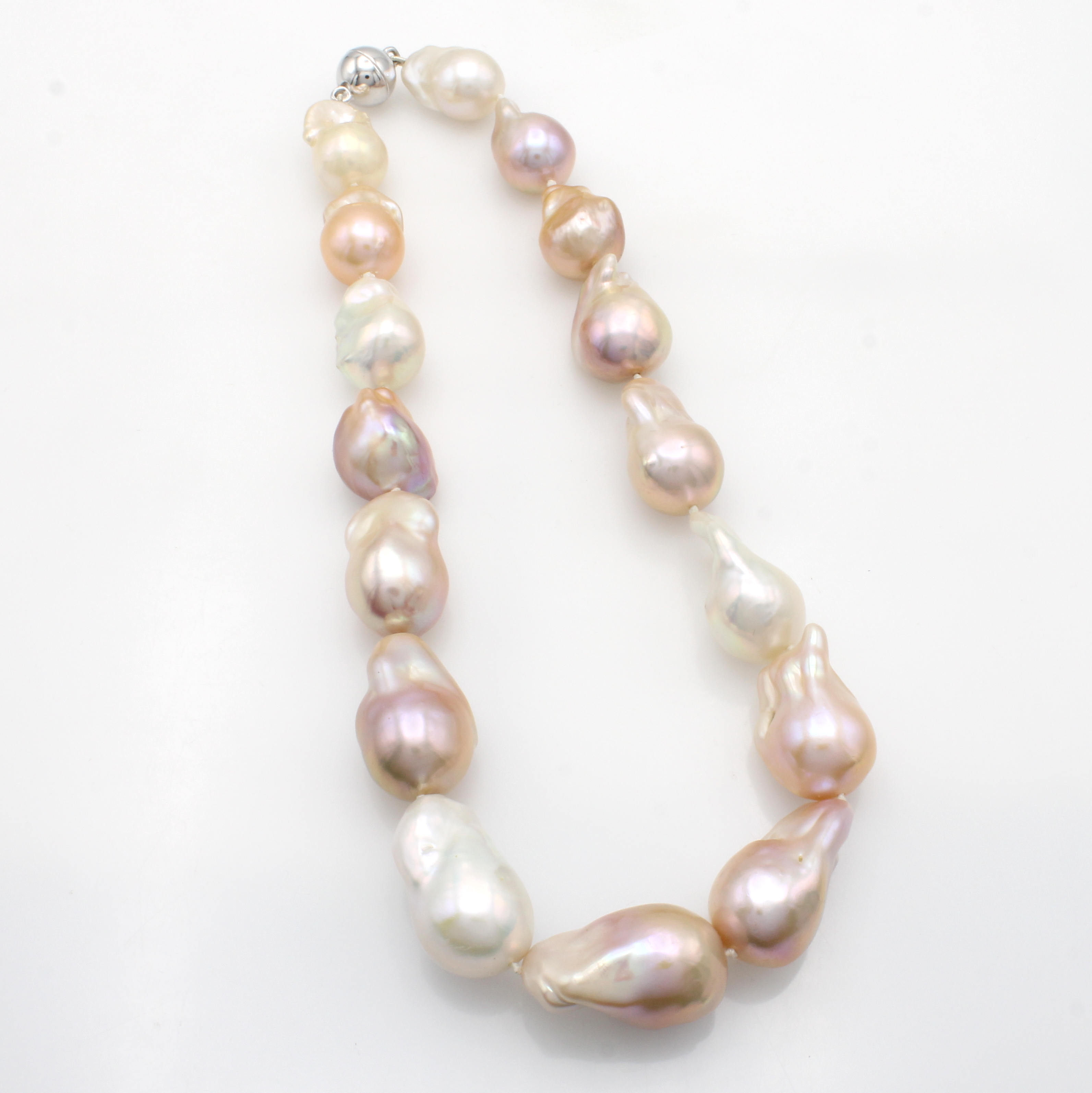Monsterperlenkette, Magnetschließe Silber, barocke Süßwasserperlen von weißem - rosaf. Lüster, L. ca. 44 cm Schätzpreis: 1500, - EUR