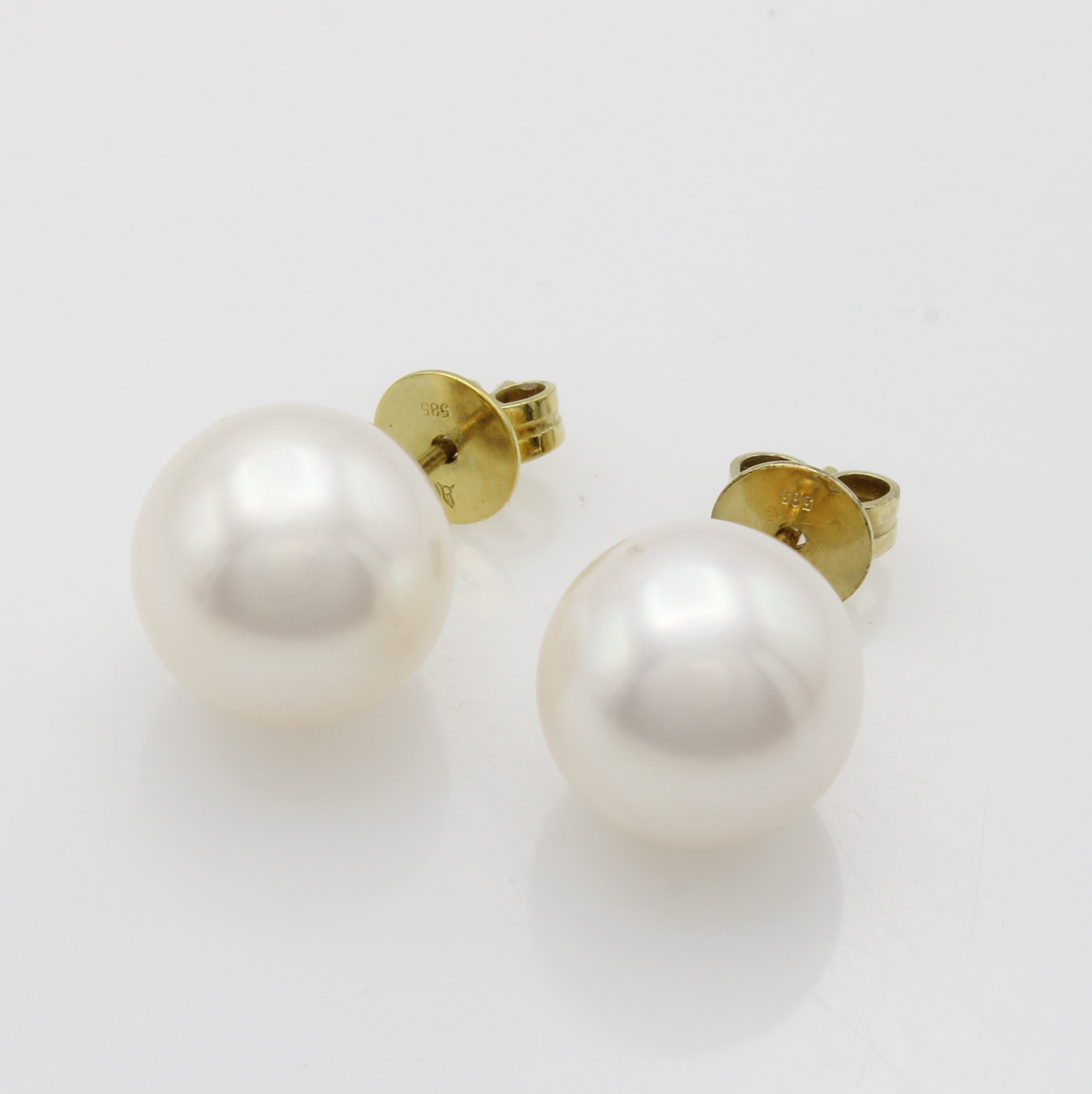 Paar Ohrstecker mit Süßwasserzuchtperlen, GG 585/000, weiße Perlen ca. 11-12 mm Schätzpreis: 1060, - EUR