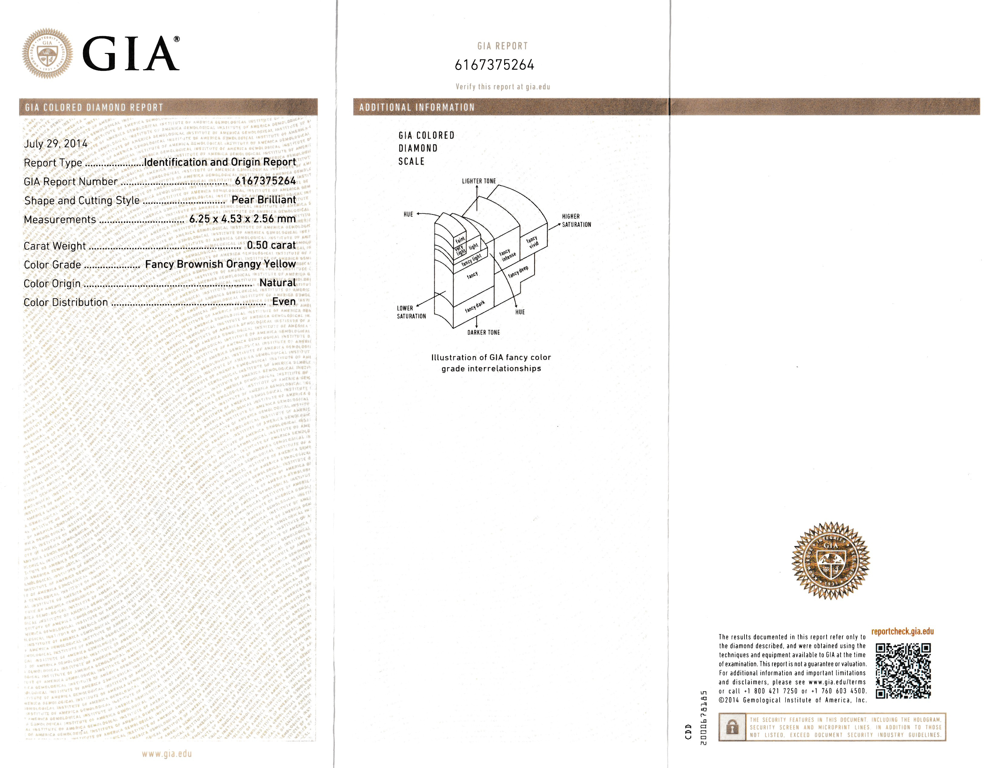 Loser Diamanttropfen, 0.50 ct Natural Fancy Brownish Orangy Yellow, 6.25 x 4.53 x