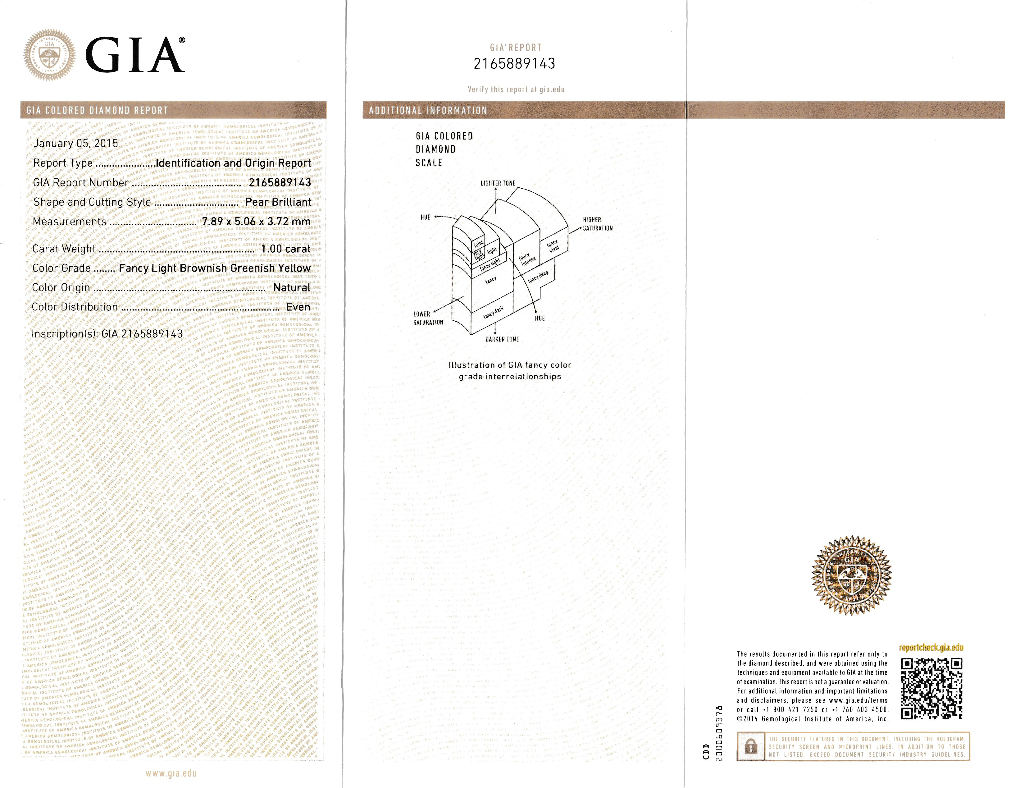 Loser Diamanttropfen, 1.00 ct Natural Fancy Light Brownish Greenish Yellow, 7.89 x 5.06 x 3.72 mm, GIA-Expertise Schätzpreis: 2860, - EUR