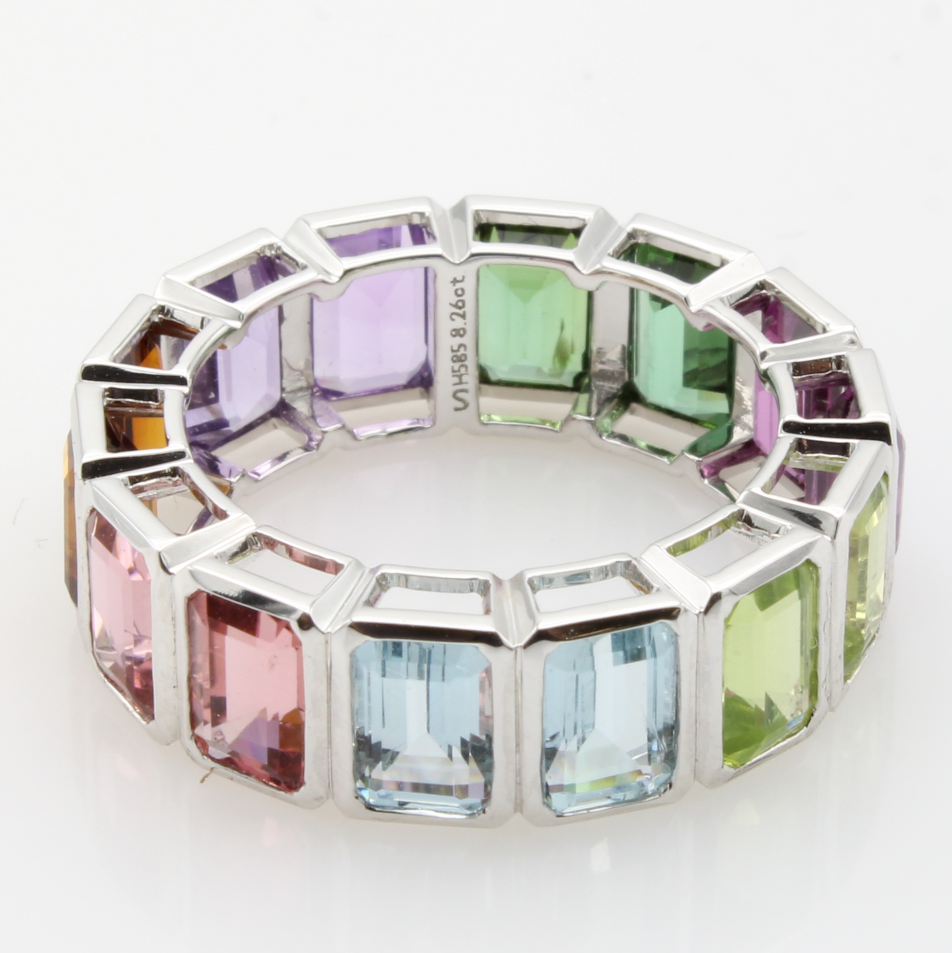 Ring mit Farbsteinen, WG 585/000, 4 Turma- line zus. ca. 2.34 ct, 2 Citrine zus.