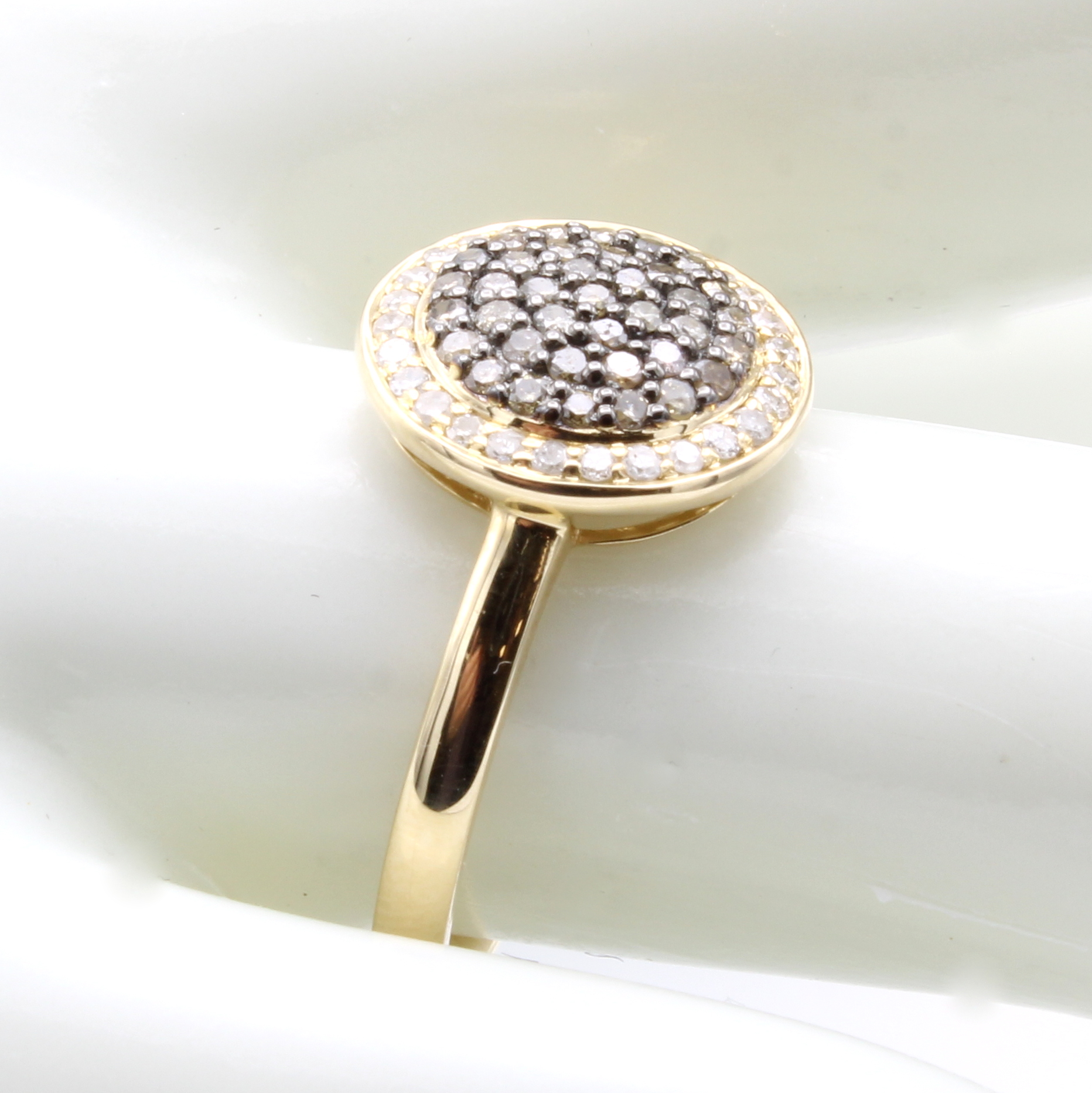 Ring mit Diamanten und Brillanten, GG 585/ 000, 37 Diam. zus. ca. 0.27 ct braun/si-p (beh.), 27 Brill. zus. ca. 0.16 ct Weiß/si-p, RW ca. 55 Schätzpreis: 1200, - EUR