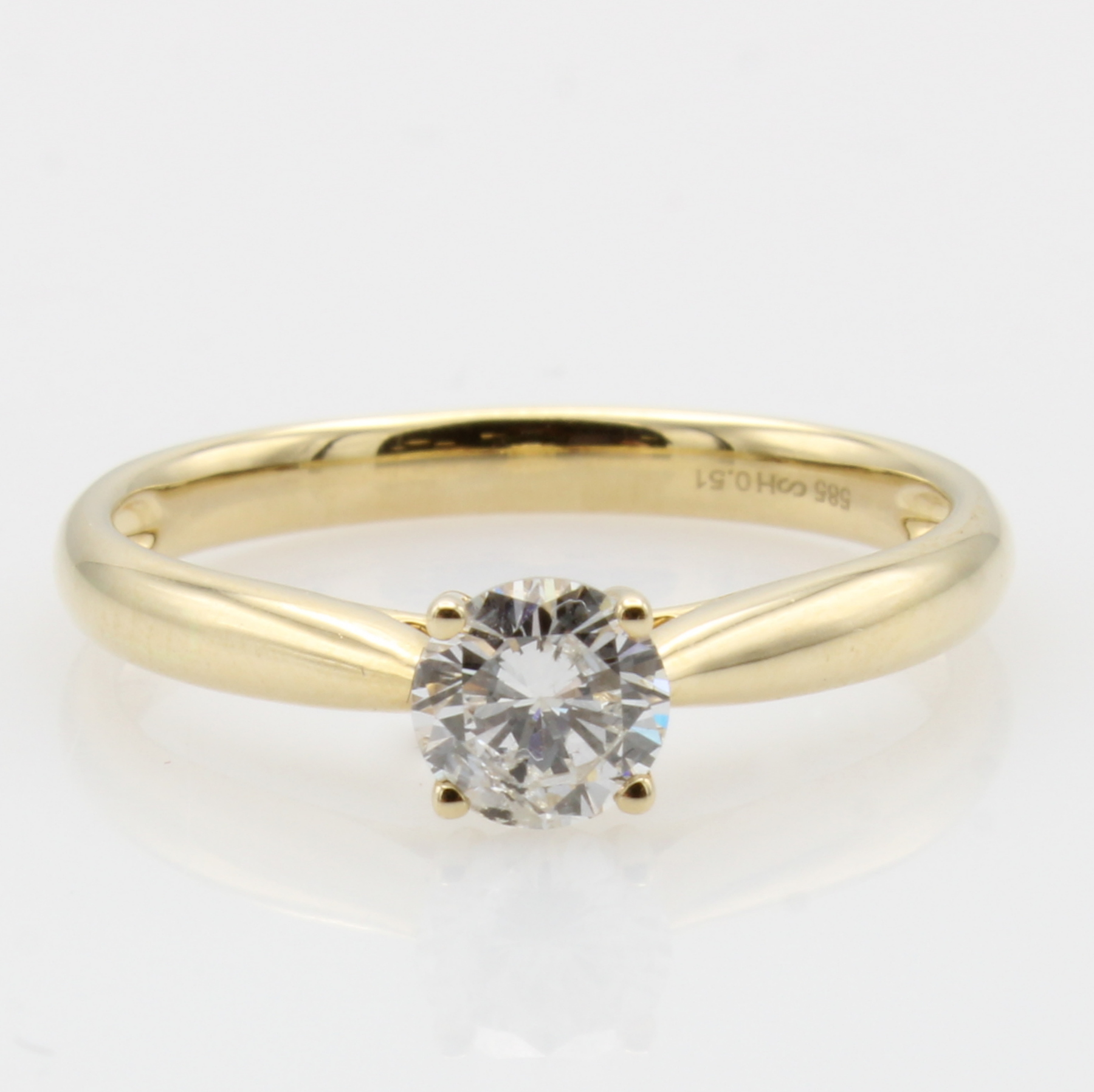Ring mit Brillantsolitär, GG 585/000, Brill.ca. 0.51 ct feines Weiß+/p, RW ca. 55 Schätzpreis: 2550, - EUR
