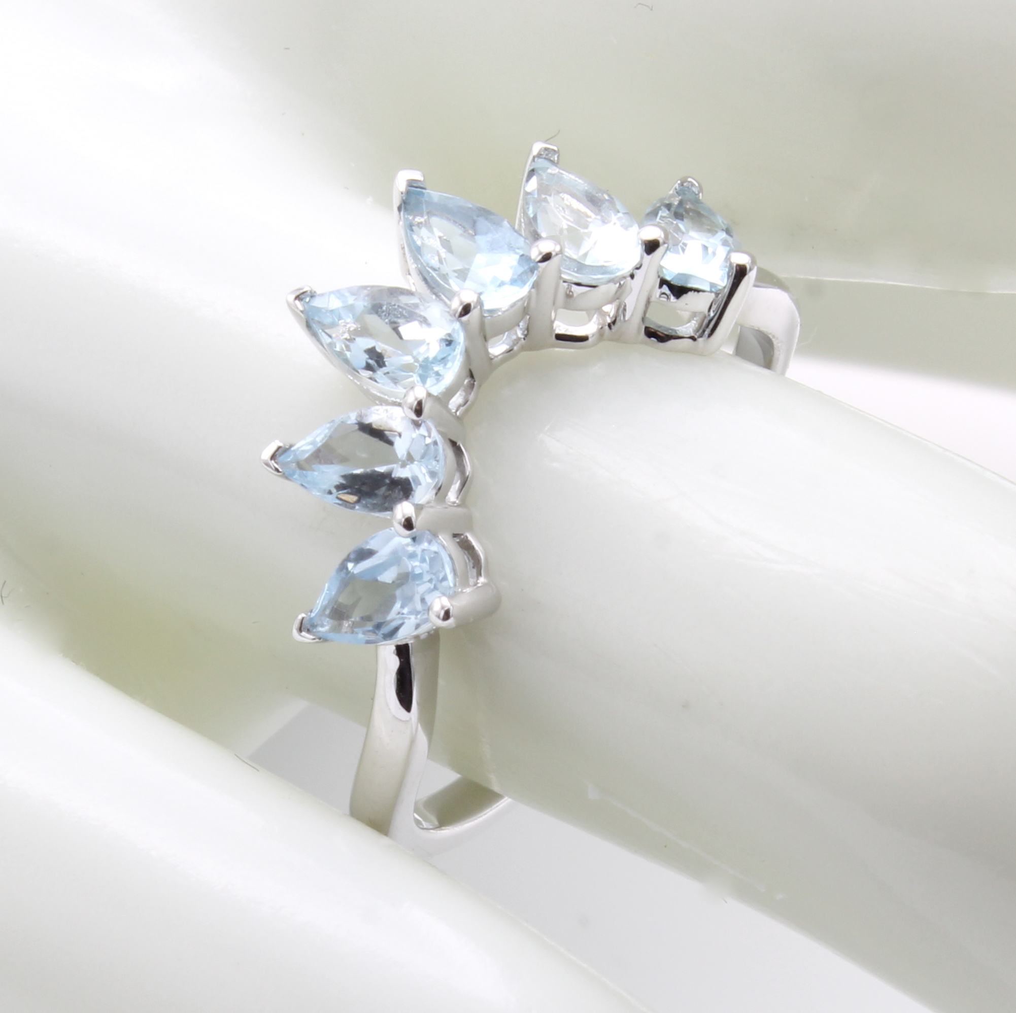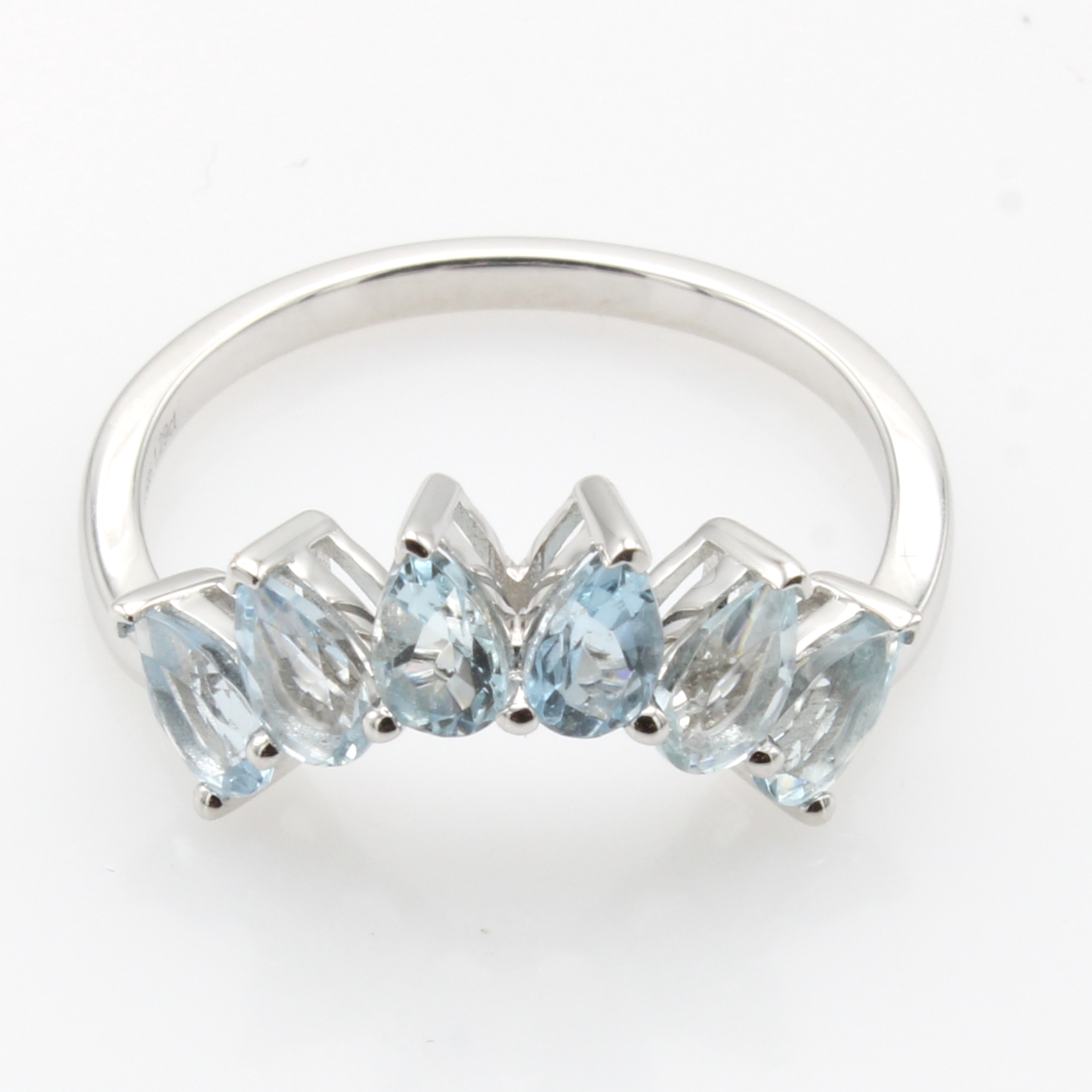 Ring mit Aquamarinen, WG 585/000, 6 tropfenf. Aquamarine zus. ca. 1.29 ct, RW ca. 55 Schätzpreis: 1140, - EUR