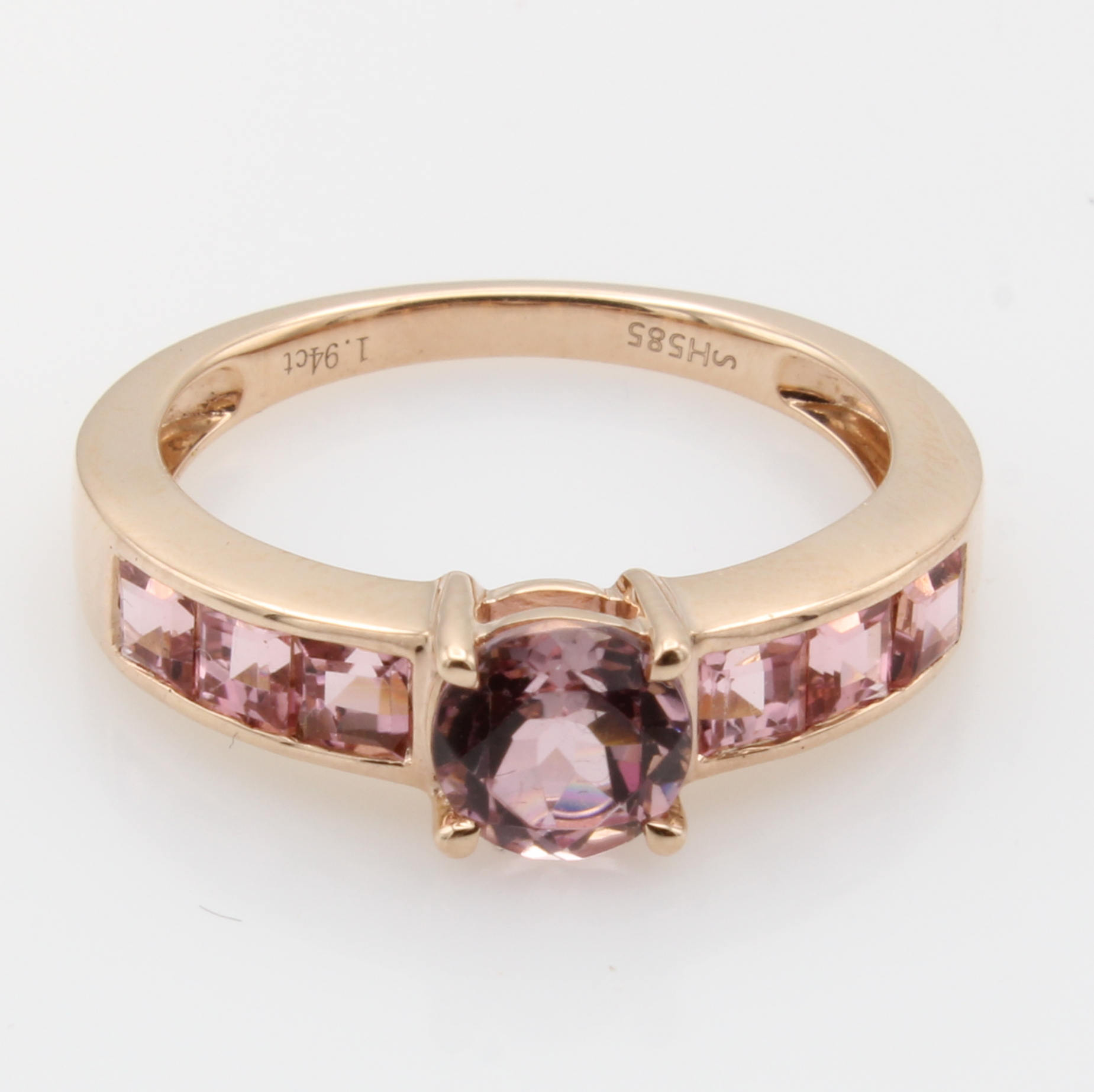 Ring mit Turmalinen, RoséG 585/000, runder u. 6 Turmalincarrées zus. ca. 1.94 ct, RW ca. 55 Schätzpreis: 1240, - EUR