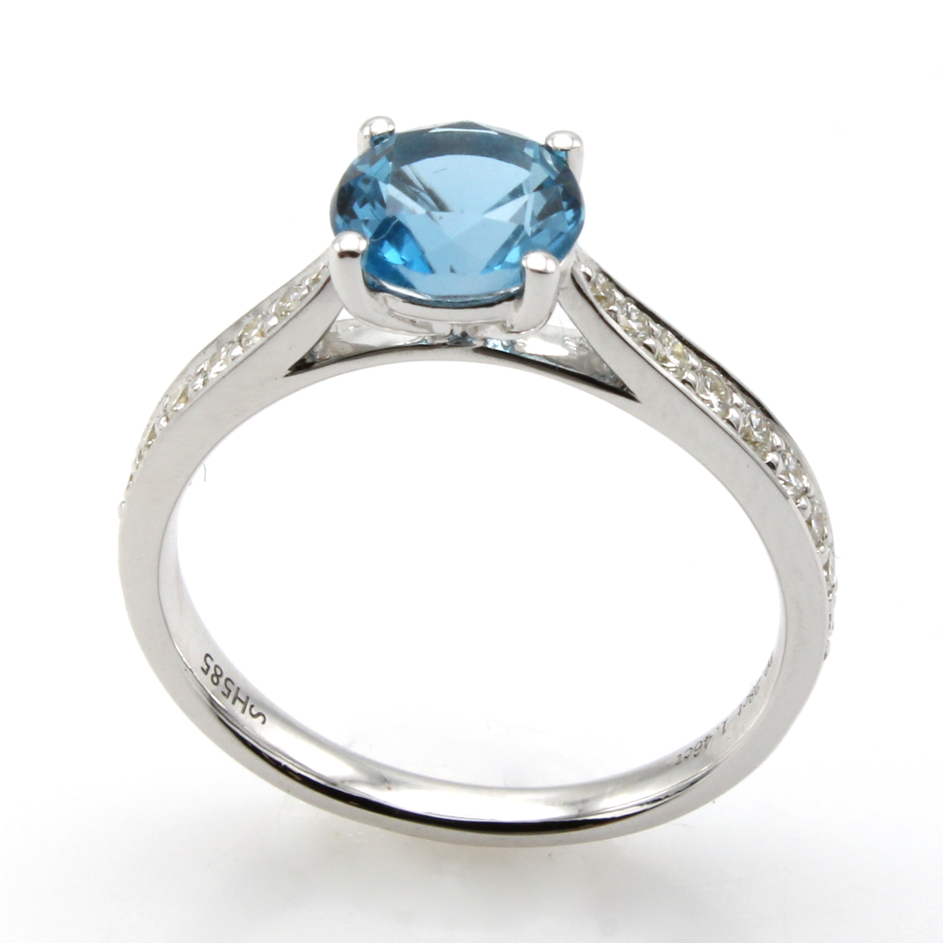 Ring mit Brillanten und Blautopas, WG 585/ 000, 18 Brill. zus. ca. 0.28 ct feines Weiß/vs-si, Blautopas (beh.) ca. 1.46 ct, RW ca. 55 Schätzpreis: 1600, - EUR