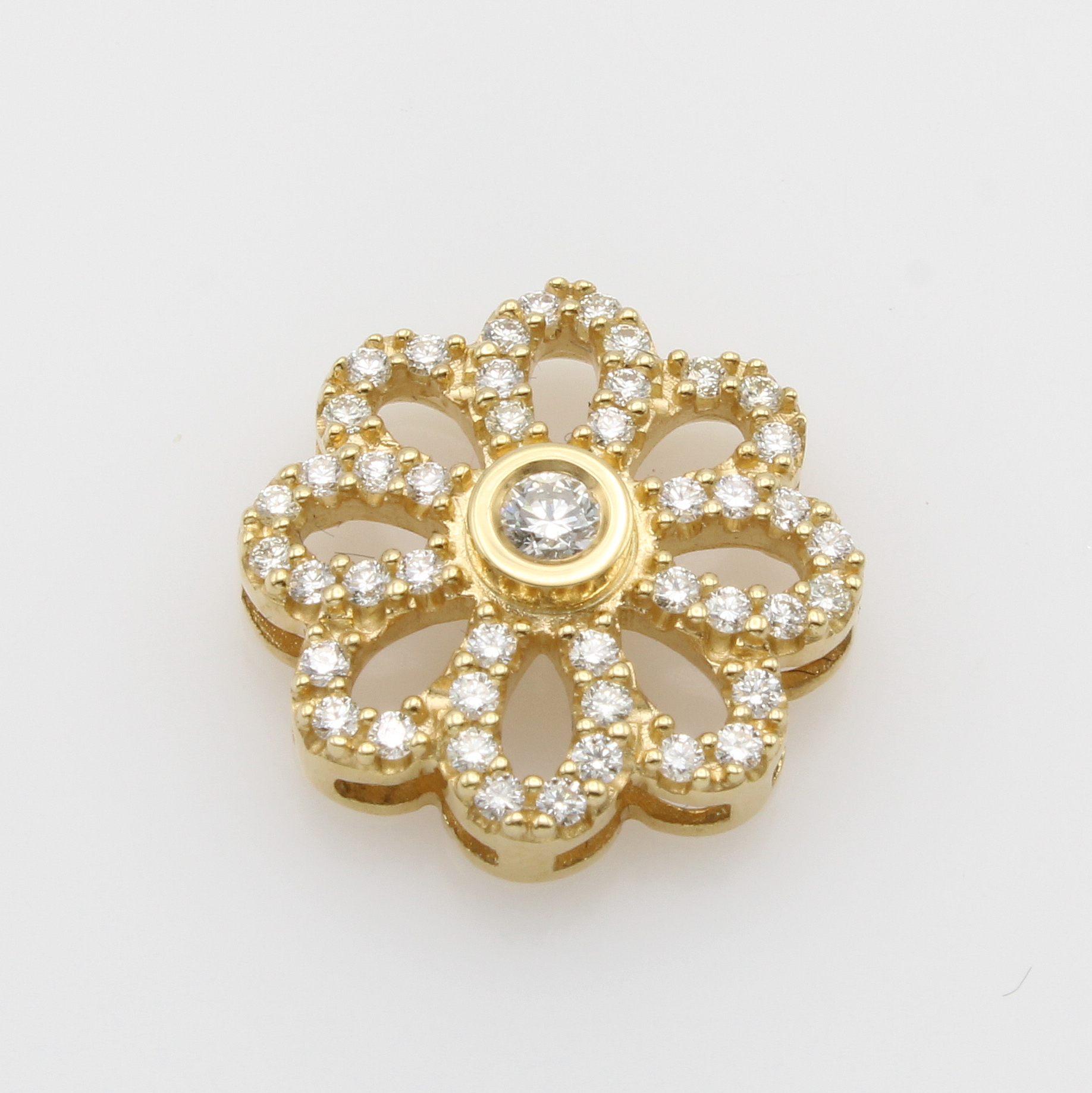 Anhänger "Blume" mit Brillanten, GG 585/ 000, 45 Brill. zus. ca. 0.50 ct get. Weiß/ lupenrein Schätzpreis: 1850, - EUR