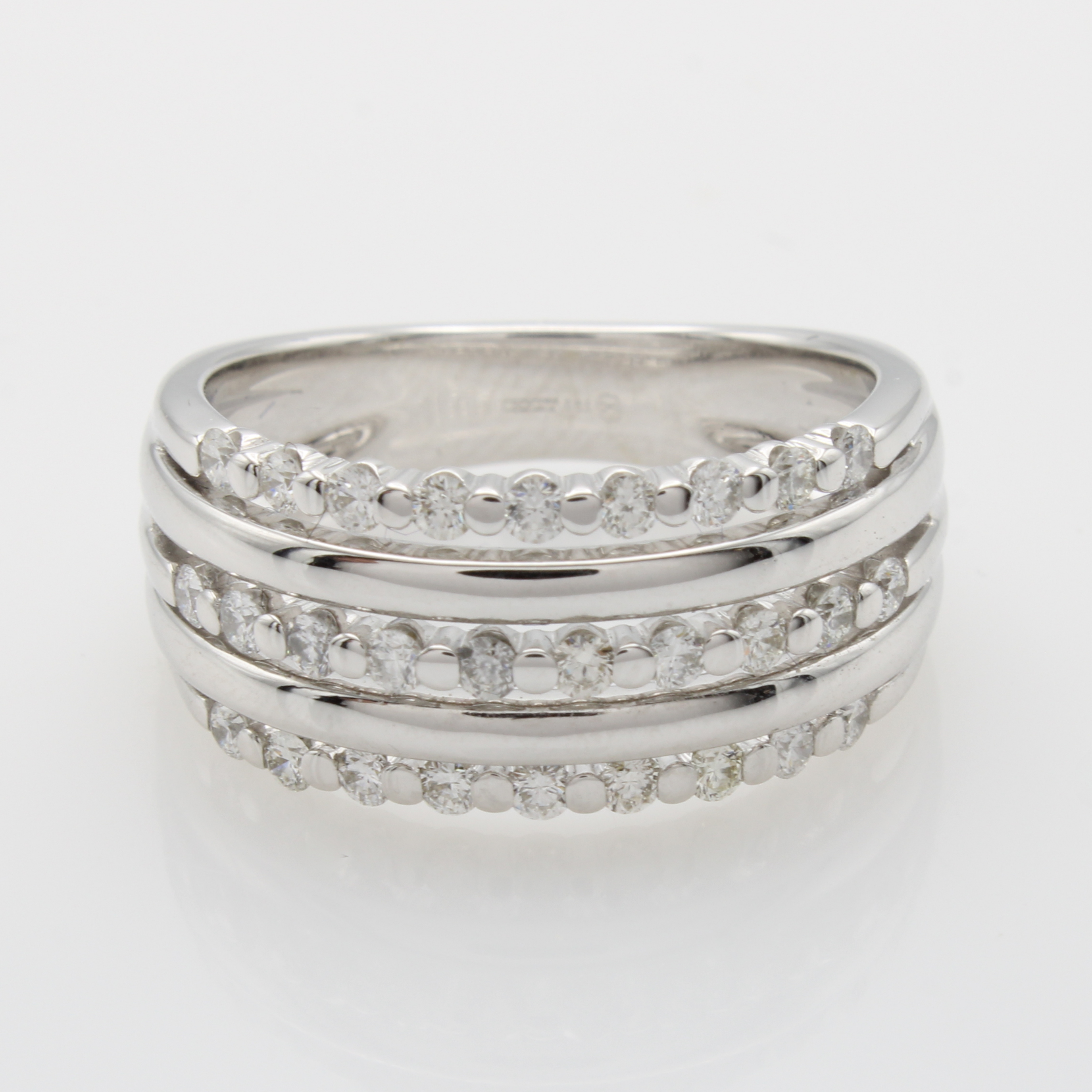 Ring mit Brillanten, WG 585/000, 28 Brill. in 3 Reihen gef. zus. ca. 0.55 ct Weiß/si, RW ca. 56 Schätzpreis: 3500, - EUR