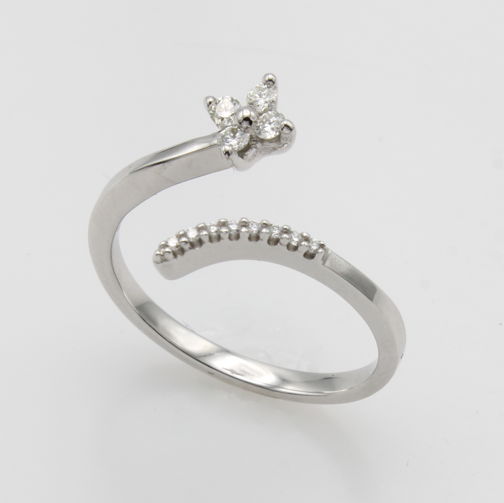 Ring mit Diamanten, WG 585/000, offene Ringschiene, 12 Diam. z.T. blütenf. gef. zus. ca. 0.15 ct Weiß/si, RW ca. 57 Schätzpreis: 1150, - EUR