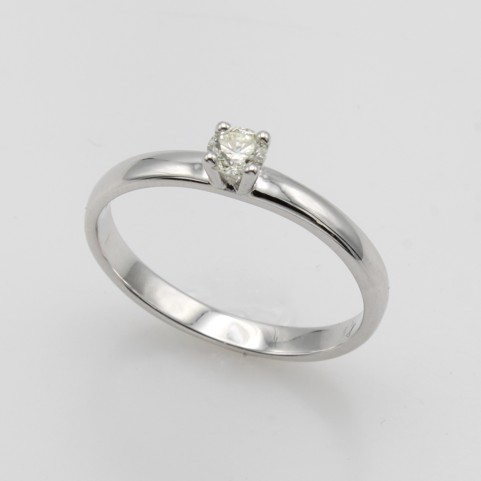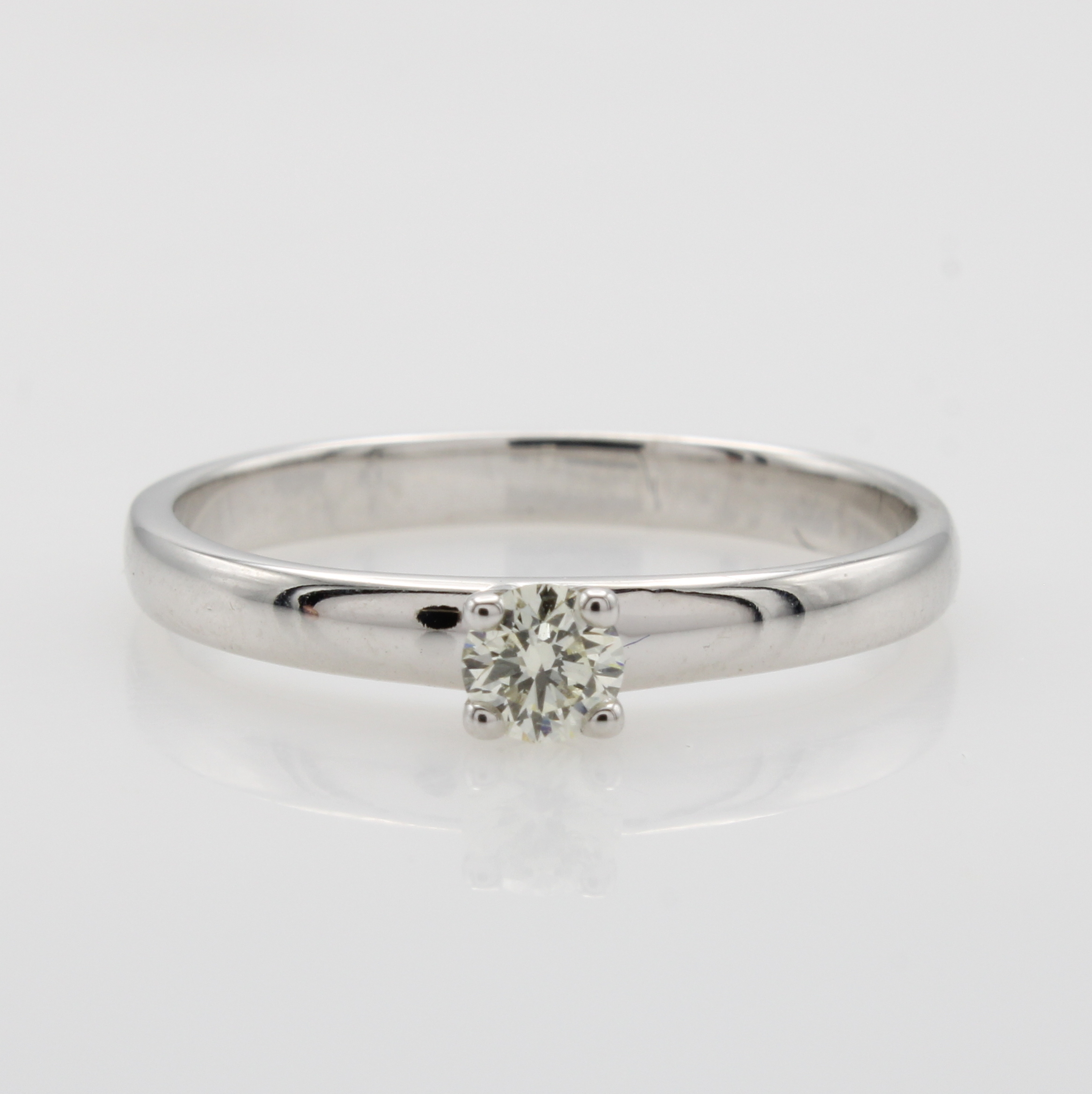 Ring mit Brillantsolitär, WG 585/000, Brill.in Krappenf. ca. 0.18 ct get. Weiß/lupenrein, RW ca. 55 Schätzpreis: 1300, - EUR
