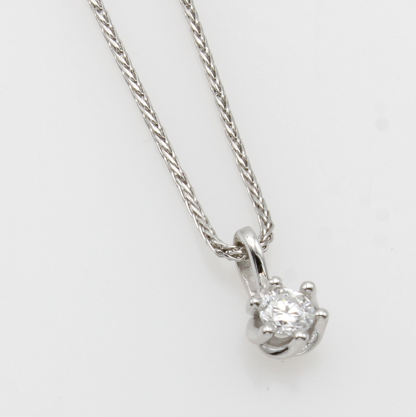 Anhänger mit Brillantsolitär, WG 585/000, Brill. in Krappenf. ca. 0.10 ct Weiß/p, an Kette L. ca. 45 cm Schätzpreis: 1060, - EUR
