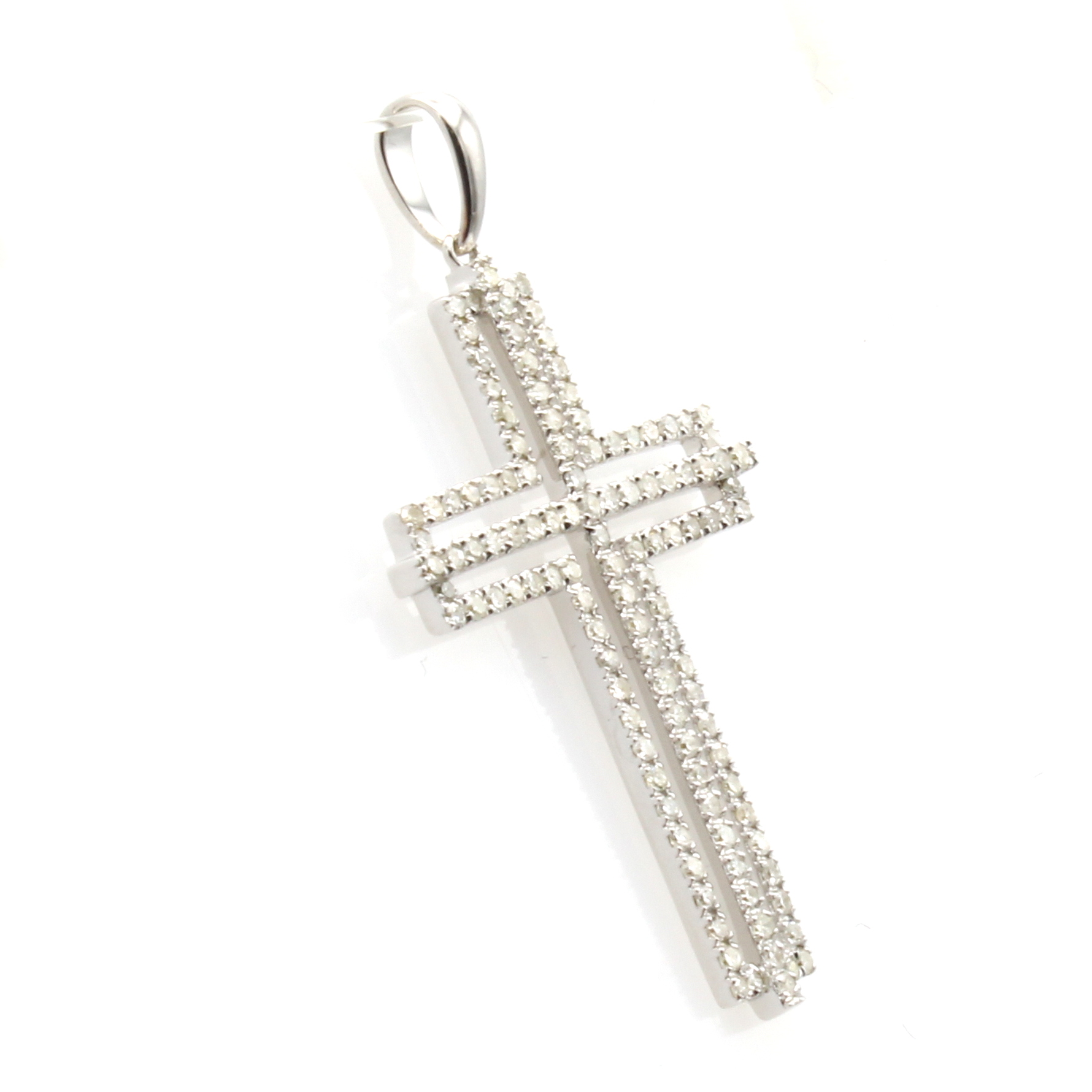 Kreuzanhänger mit Brillanten, WG 585/000, 117 Brill. zus. ca. 0.56 ct Weiß/si-p, Maße ca. 3x2 cm ohne Öse Schätzpreis: 1350, - EUR
