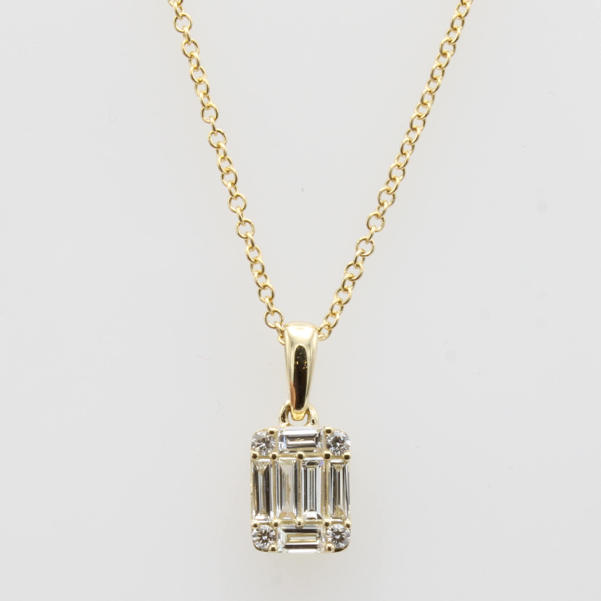 Anhänger mit Brillanten und Diamanten an Kette, GG 585/000, Diamantbag. u. 4 Brill. zus. 0.29 ct feines Weiß+/vs, in L. ca. 42 u. 45 cmtragbar Schätzpreis: 1290, - EUR