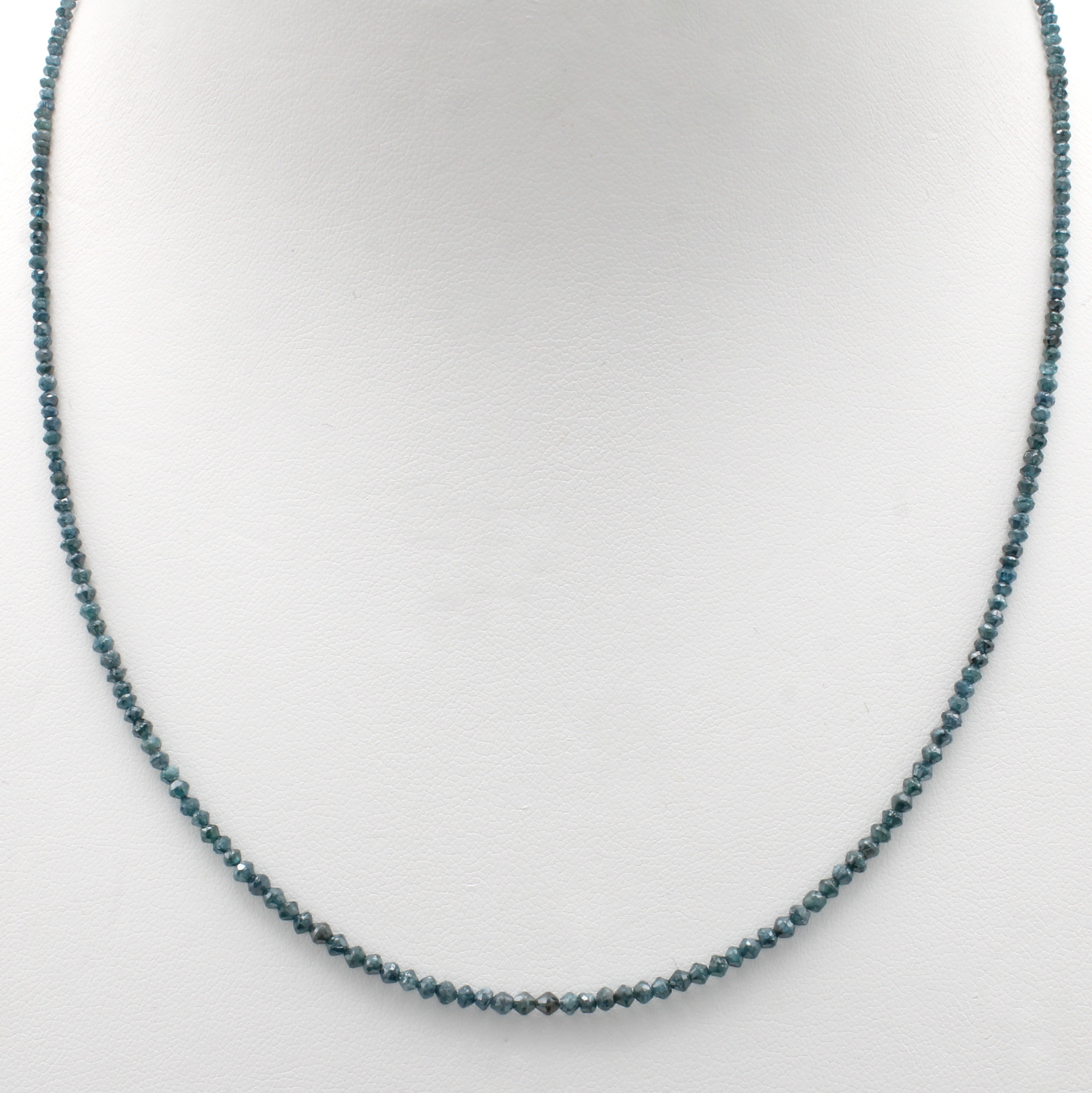 Collier aus blauen Diamanten, Karabiner- schl. GG 585/000, facett. Diam. blau (beh.), L. ca. 45 - 50 cm Schätzpreis: 1060, - EUR