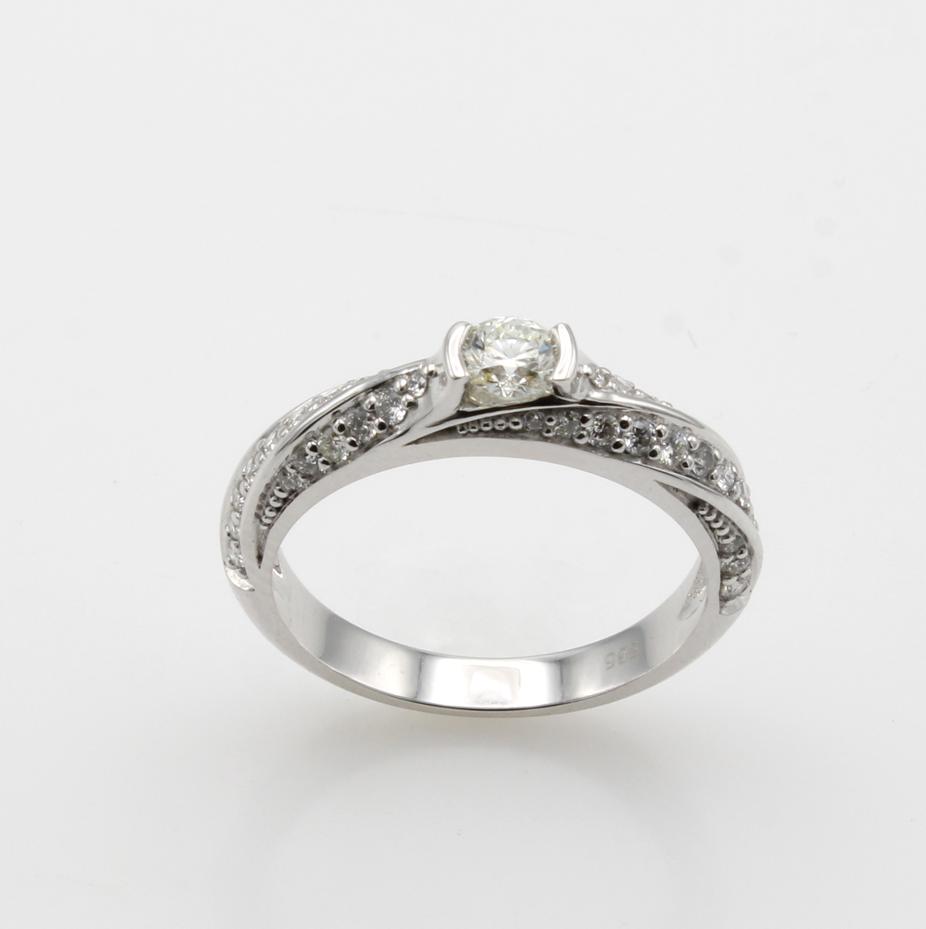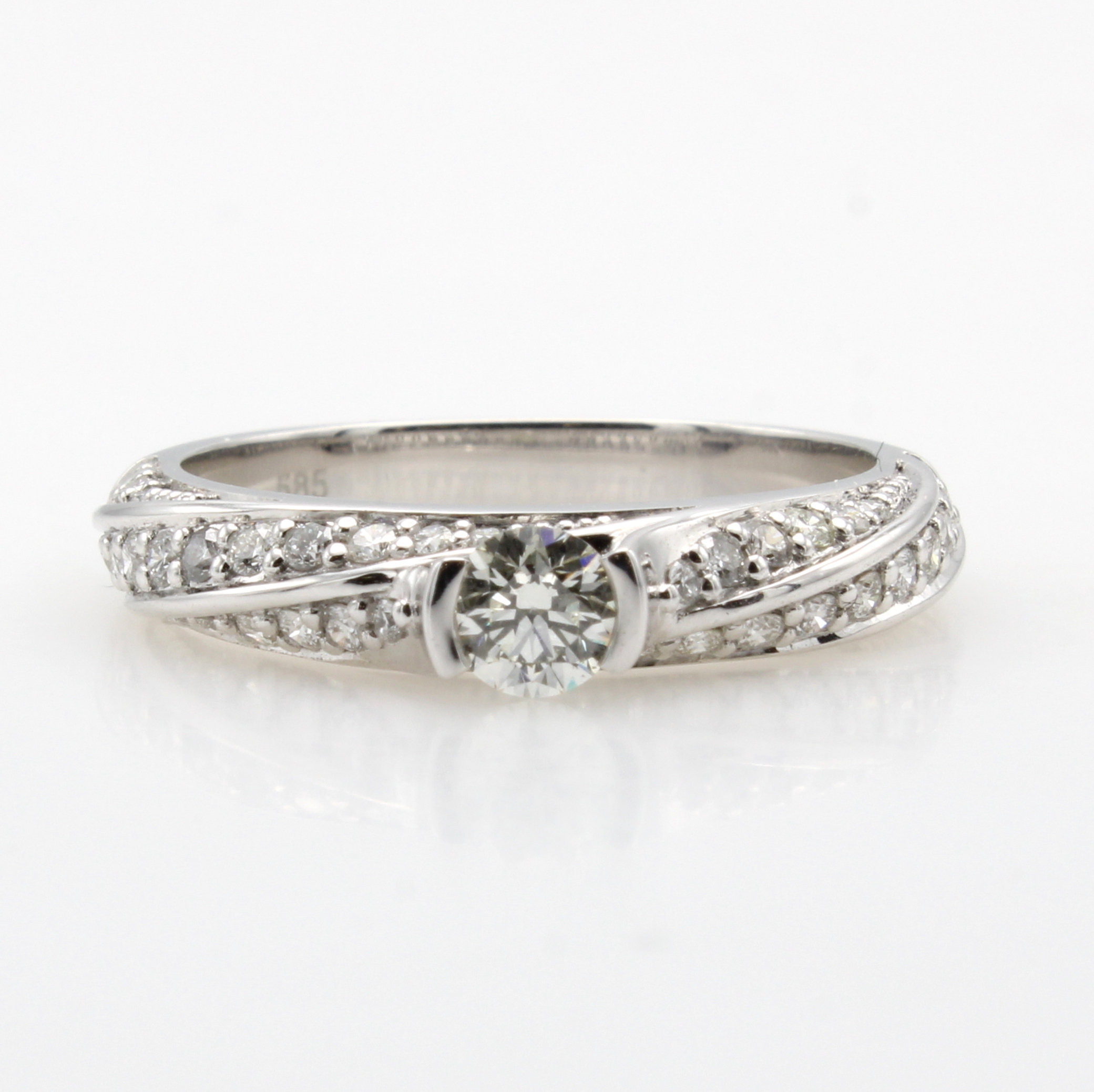 Ring mit Brillanten, WG 585/000, Mittelsteinund Besatzbrill. in 3 Reihen gef. zus. ca. 1.00 ct l.get.Weiß/lupenrein, RW ca. 56 Schätzpreis: 2900, - EUR