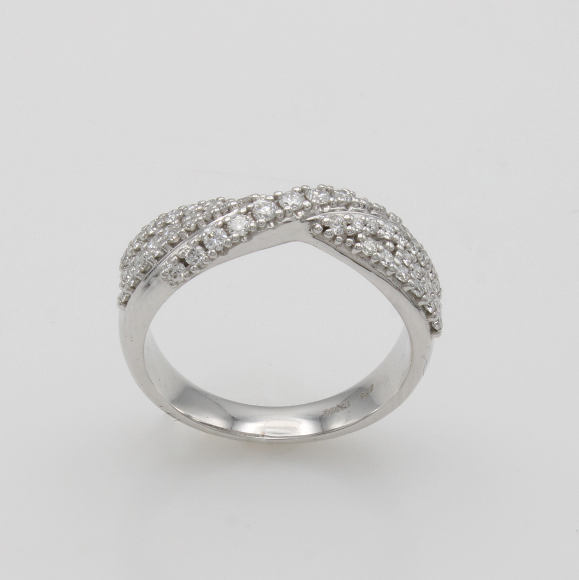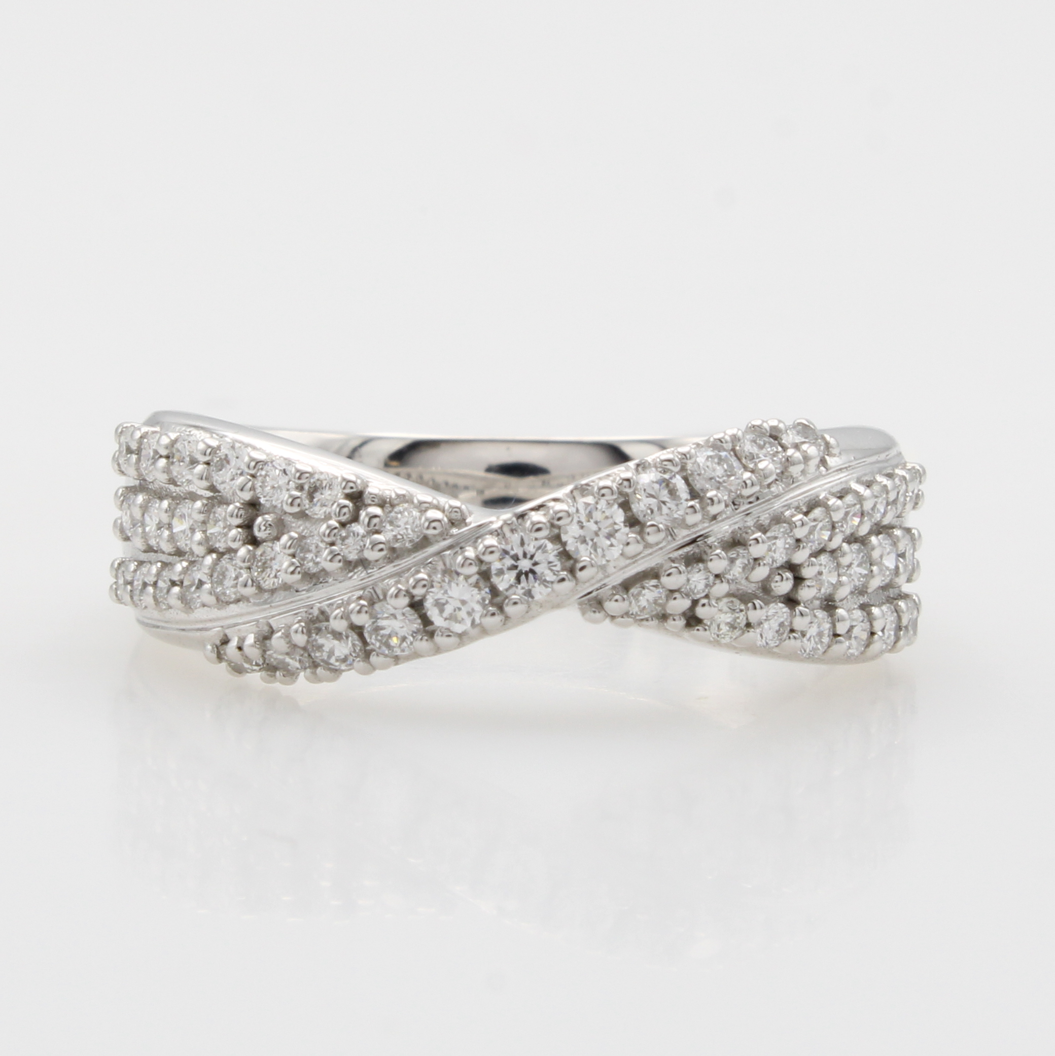 Ring mit Brillanten, WG 585/000, 49 Brill. in überkreuzter Schiene gef. zus. ca. 0.55 ct Weiß/si, RW ca. 56 Schätzpreis: 3300, - EUR
