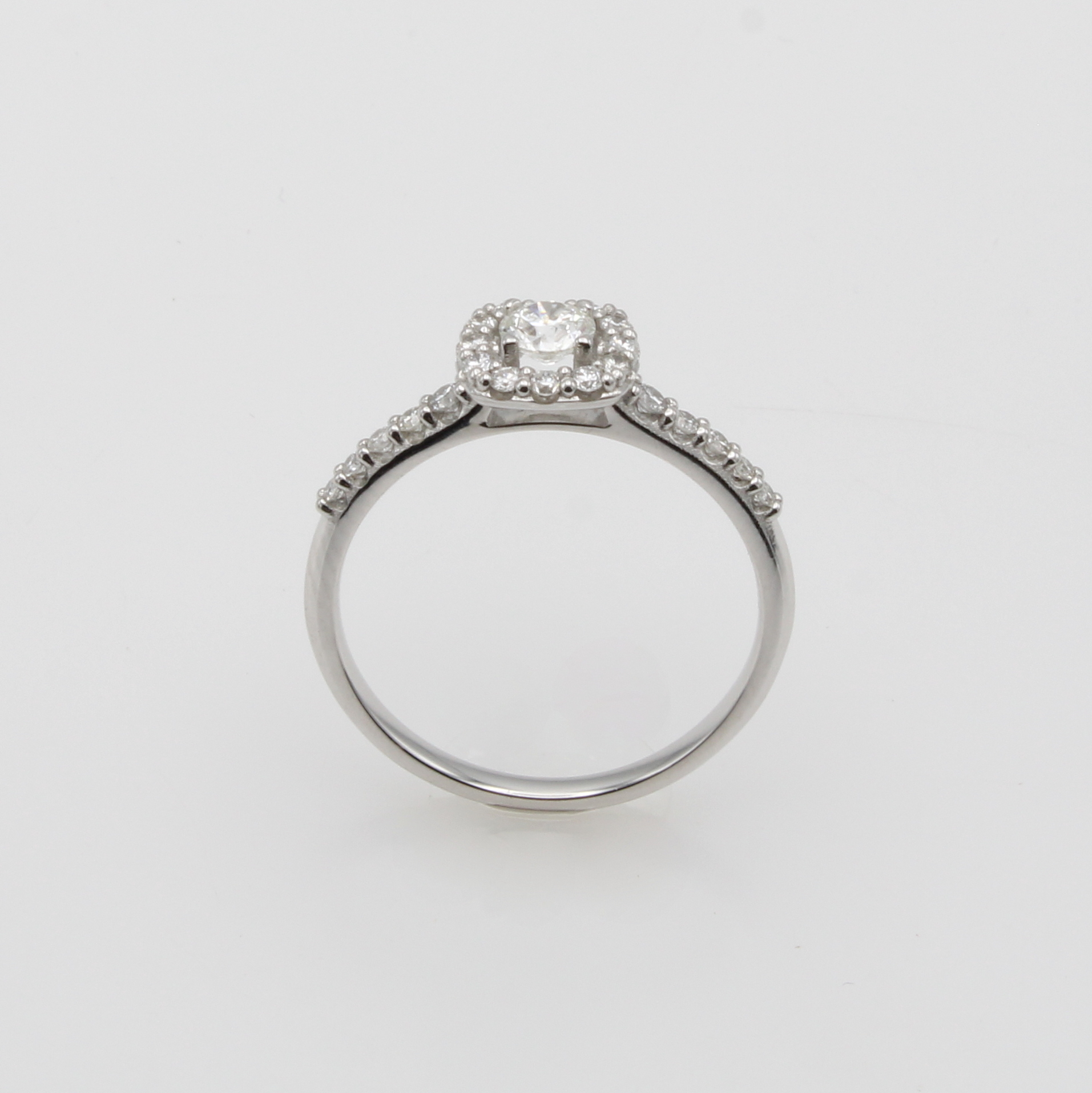 Ring mit Brillanten, WG 585/000, Mittel- stein in Krappenf. ca. 0.25 ct Weiß/p, 22 Besatzbrill. zus. ca. 0.30 ct Weiß/p, RW ca. 56 Schätzpreis: 2100, - EUR