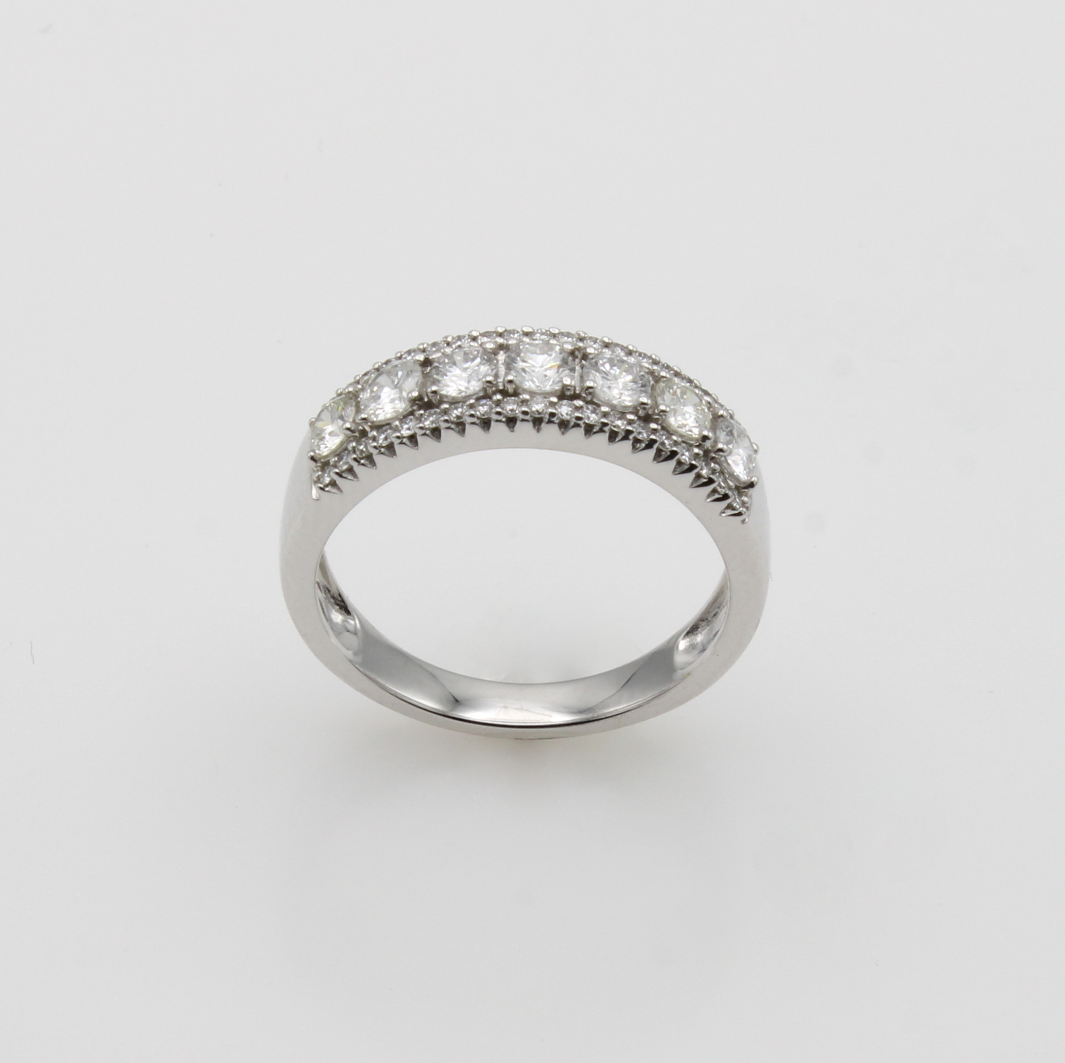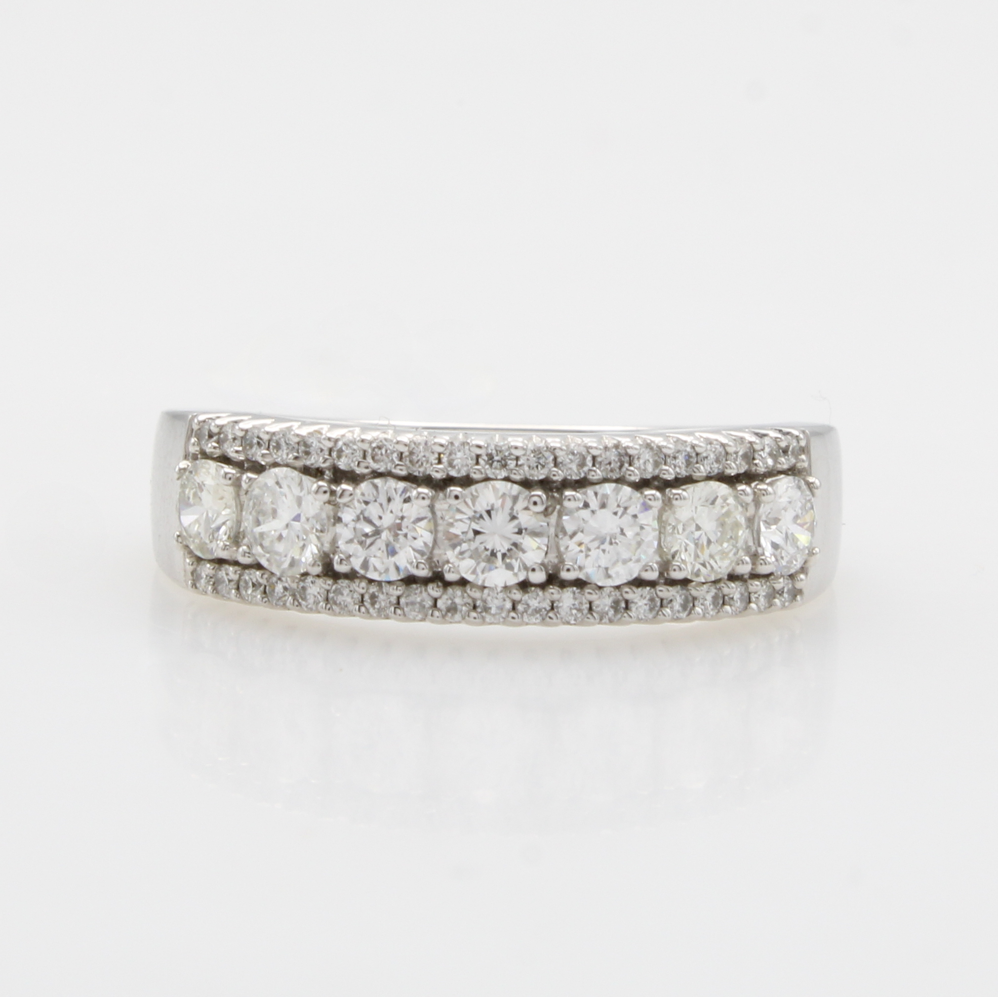 Ring mit Brillanten, WG 585/000, 45 Brill. in 3 Reihen gef. zus. ca. 1.00 ct Weiß/p, RW ca. 57 Schätzpreis: 3500, - EUR