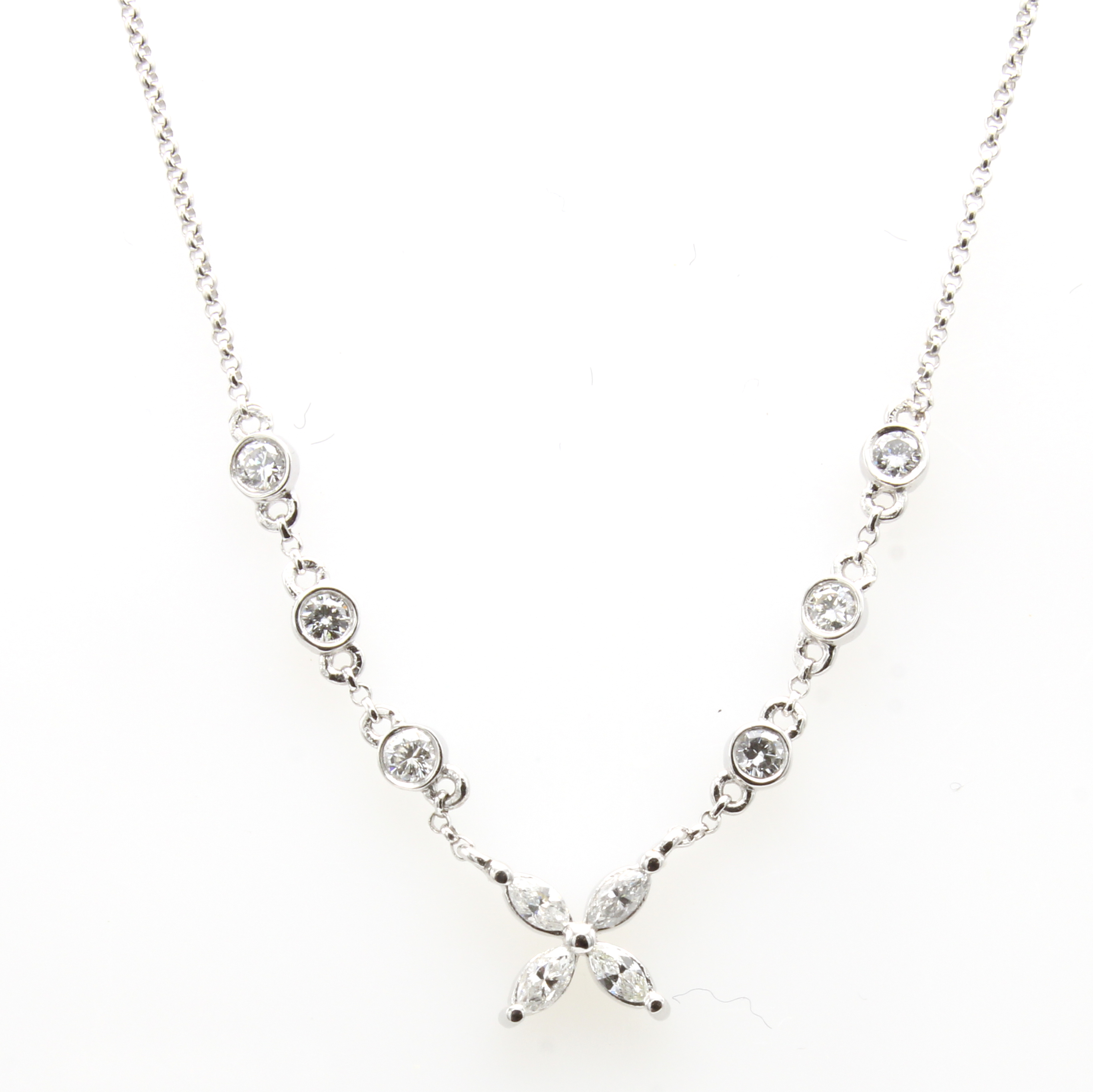 Collier mit Brillanten und Diamanten, WG 750/000, 4 Diamantnav. zus. ca. 0.24 ct u. 6 Brill. zus. ca. 0.23 ct feines Weiß+/vs, 42.5 u. 45.5 cm tragbar Schätzpreis: 2300, - EUR