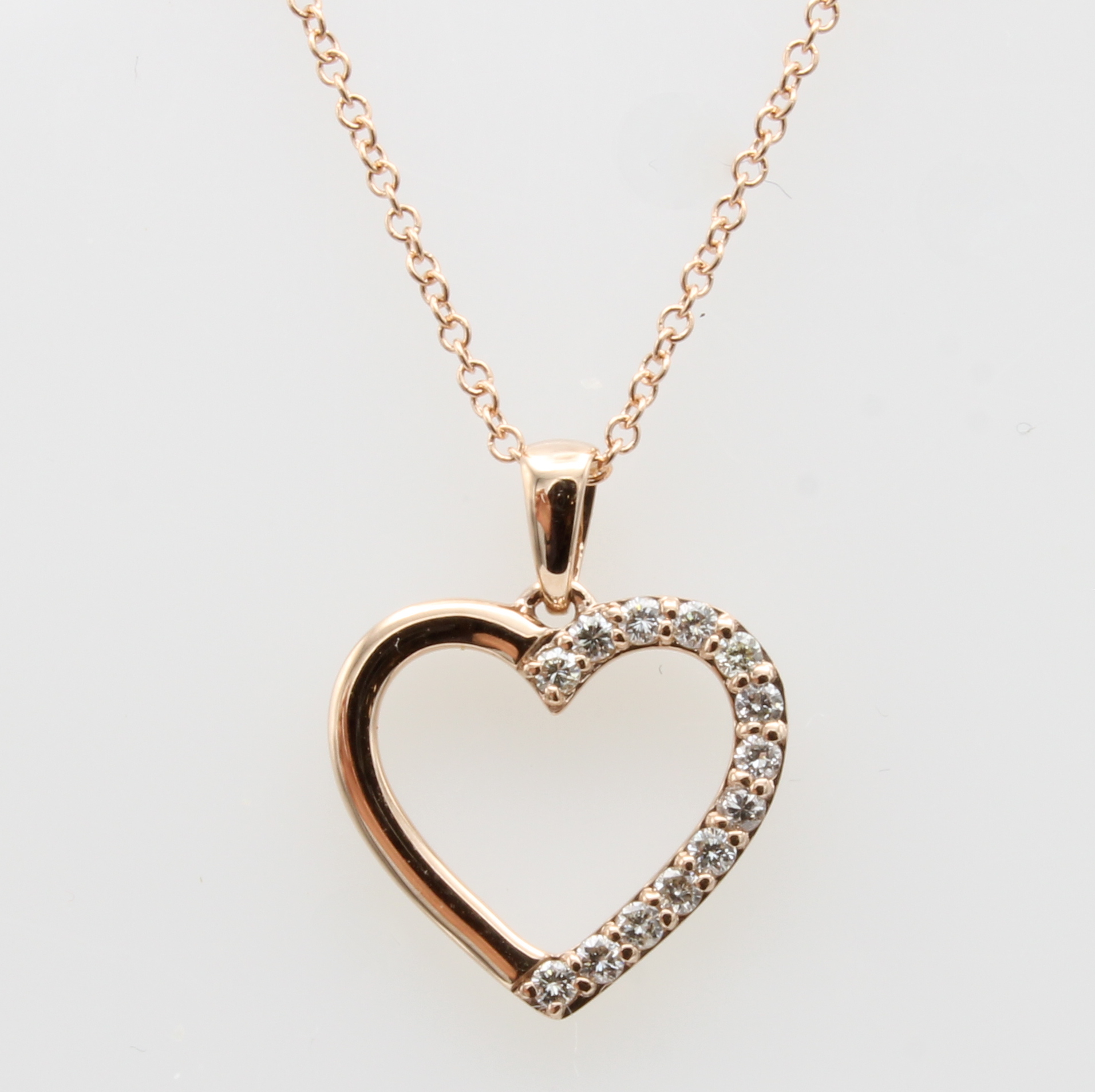 Herzanhänger mit Brillanten an Kette, RoséG 585/000, 13 Brill. zus. ca. 0.17 ct feines Weiß+/vs, in L. ca. 42 u. 45 cm tragbar Schätzpreis: 1450, - EUR