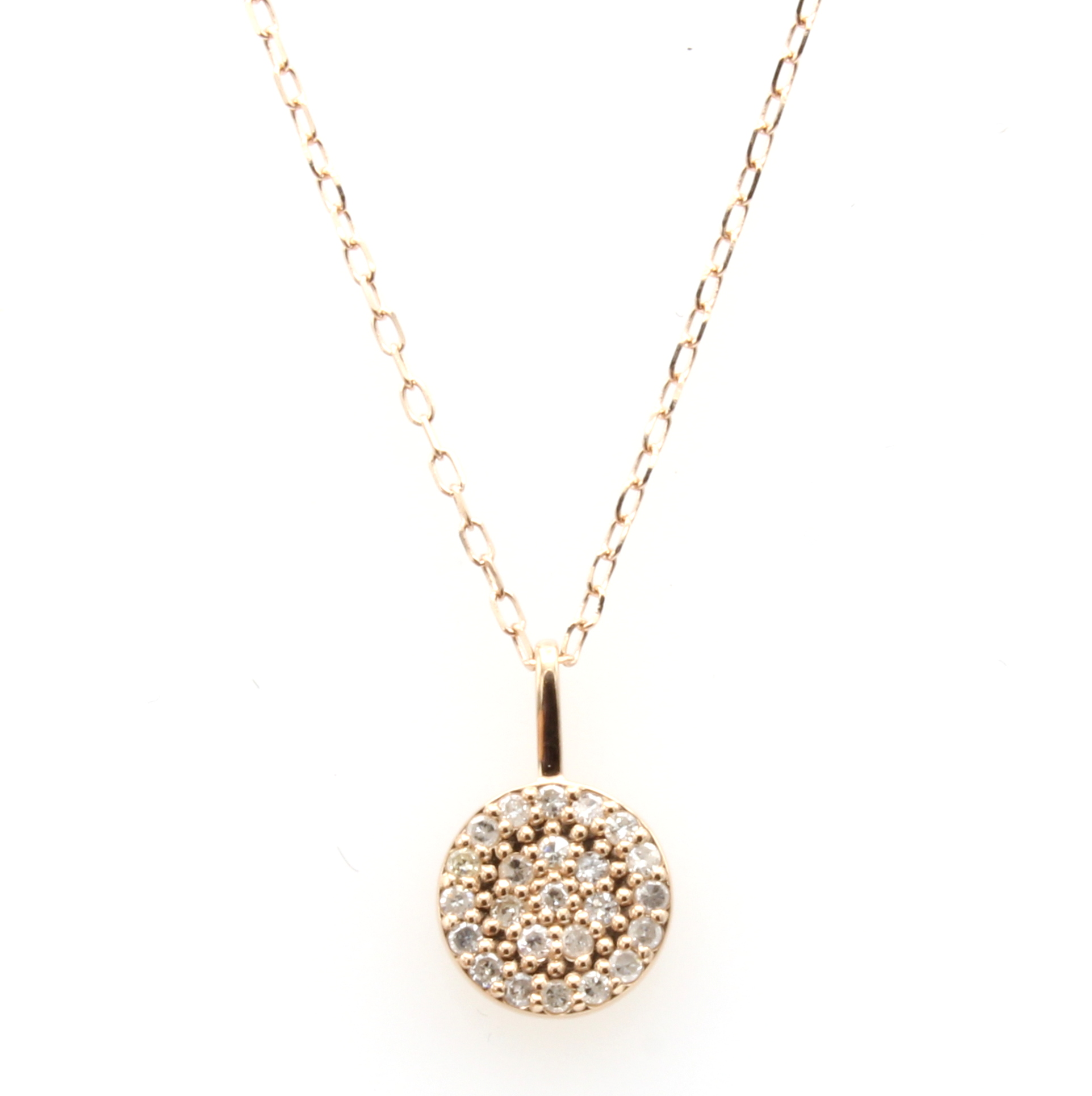 Runder Anhänger mit Brillanten an Kette, RoséG 585/000, 24 Brill. zus. ca. 0.17 ct Weiß/si-p, in L. ca. 42 u. 45 cm tragbar Schätzpreis: 780, - EUR