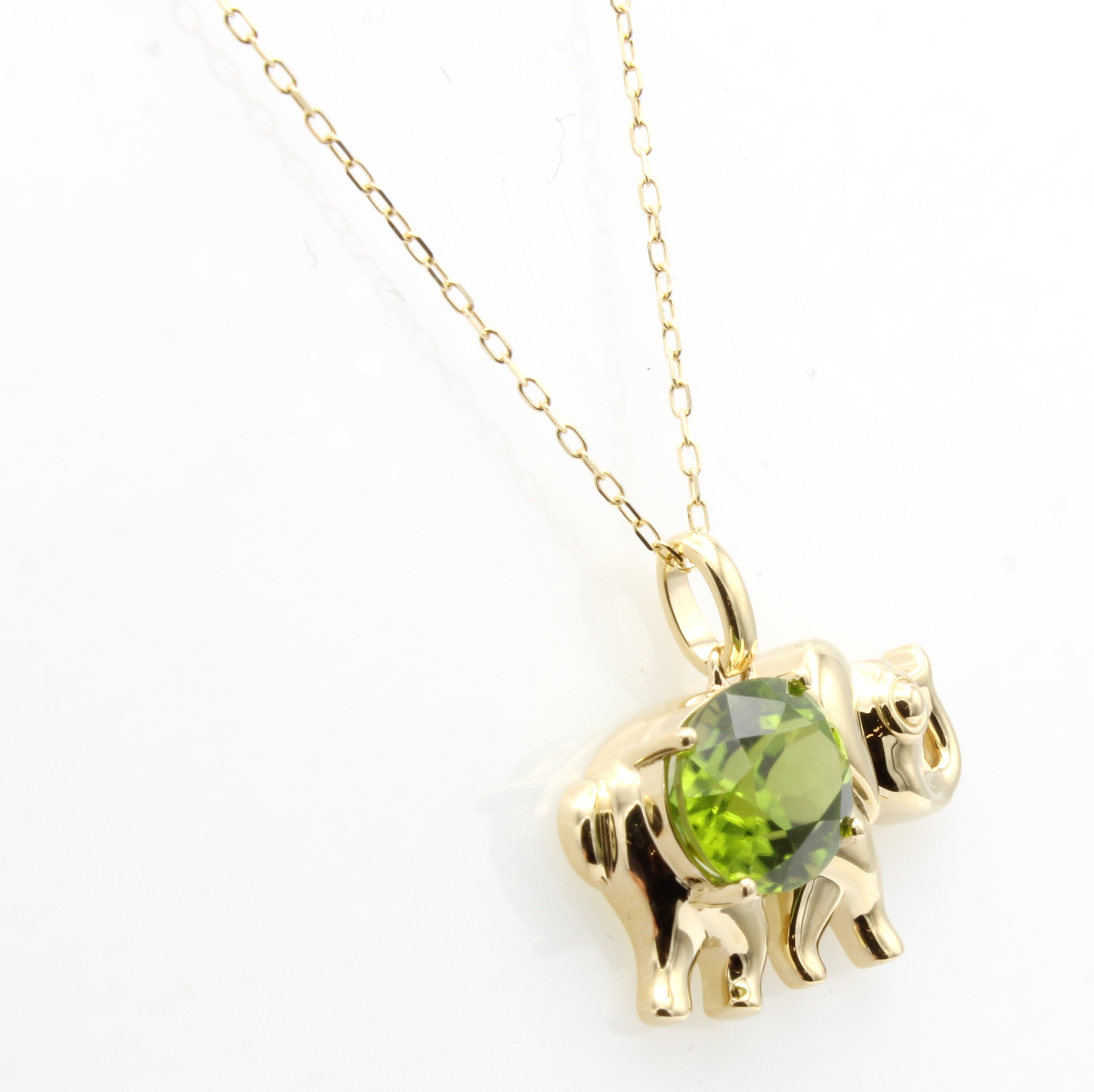 Anhänger "Elefant" mit Peridot an Kette, GG 585/000, ovaler Peridot ca. 4.27 ct, in L. ca.42 u. 45 cm tragbar Schätzpreis: 2220, - EUR