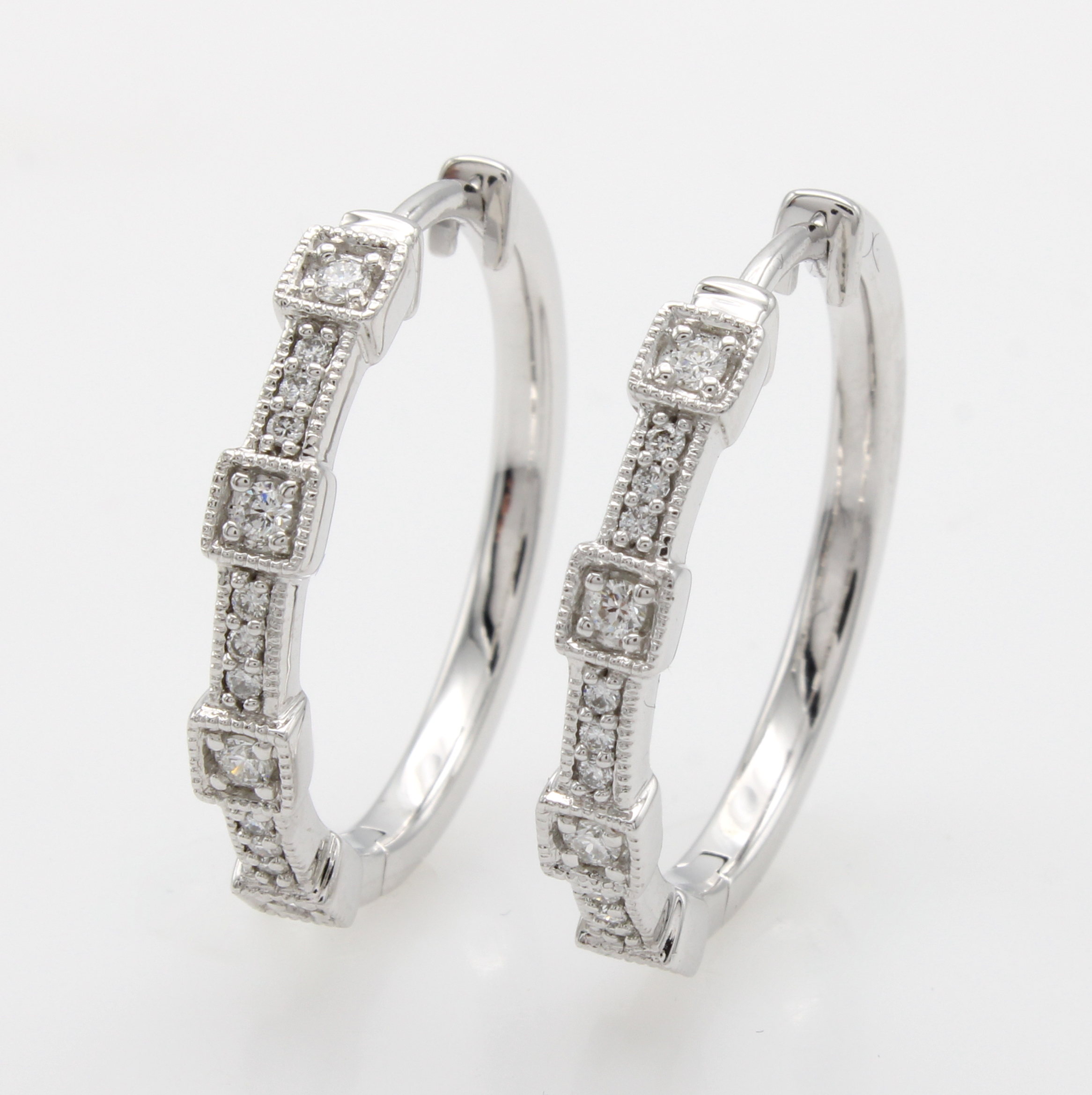 Paar Klappcreolen mit Brillanten, WG 585/000, 26 Brill. zus. ca. 0.25 ct Weiß/si, D. ca. 20 mm Schätzpreis: 3100, - EUR