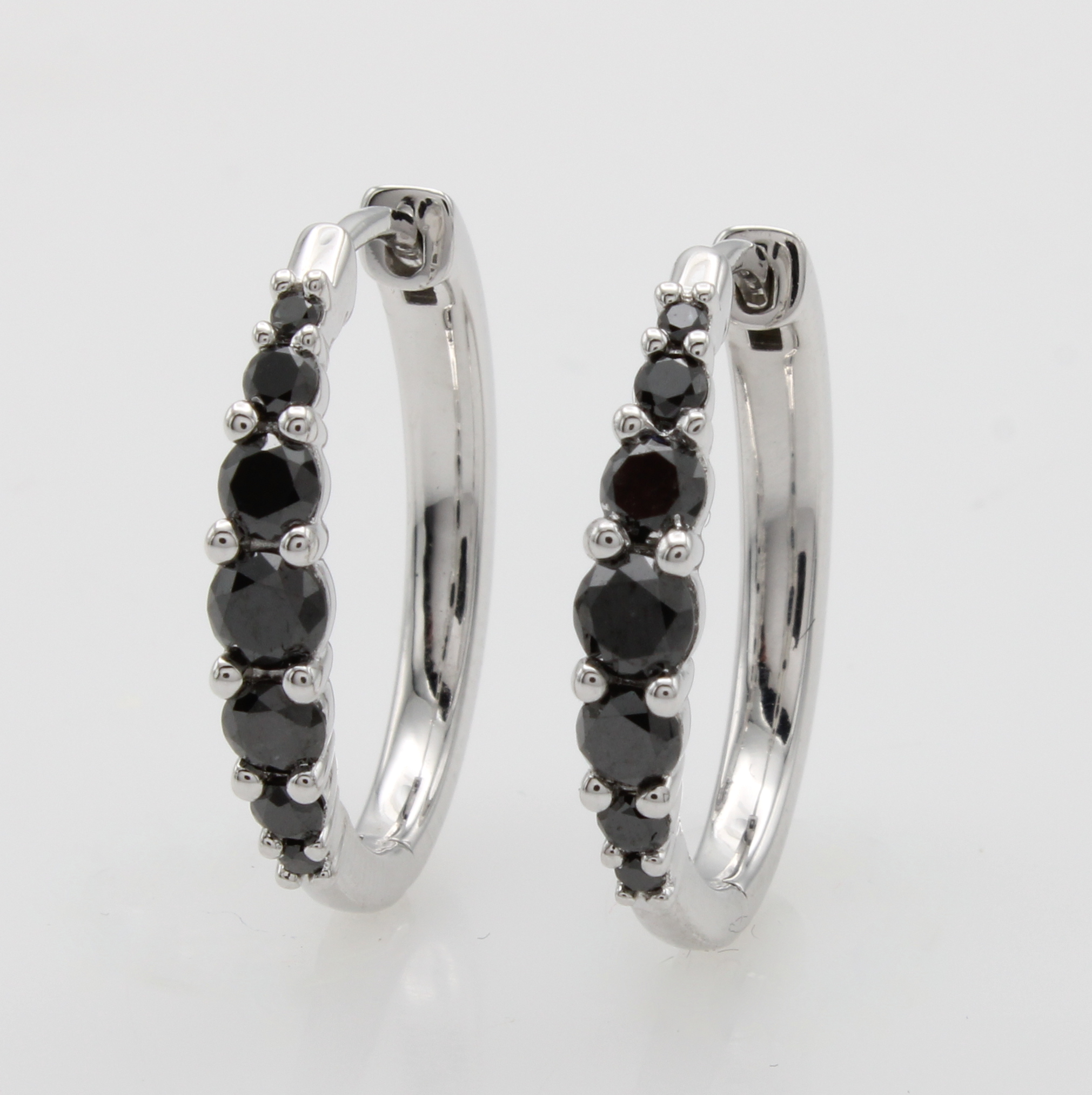 Paar Klappcreolen mit schwarzen Diamanten, WG 585/000. 14 schwarze Diam. im Größenver- lauf zus. ca. 0.75 ct (beh.) Schätzpreis: 2600, - EUR
