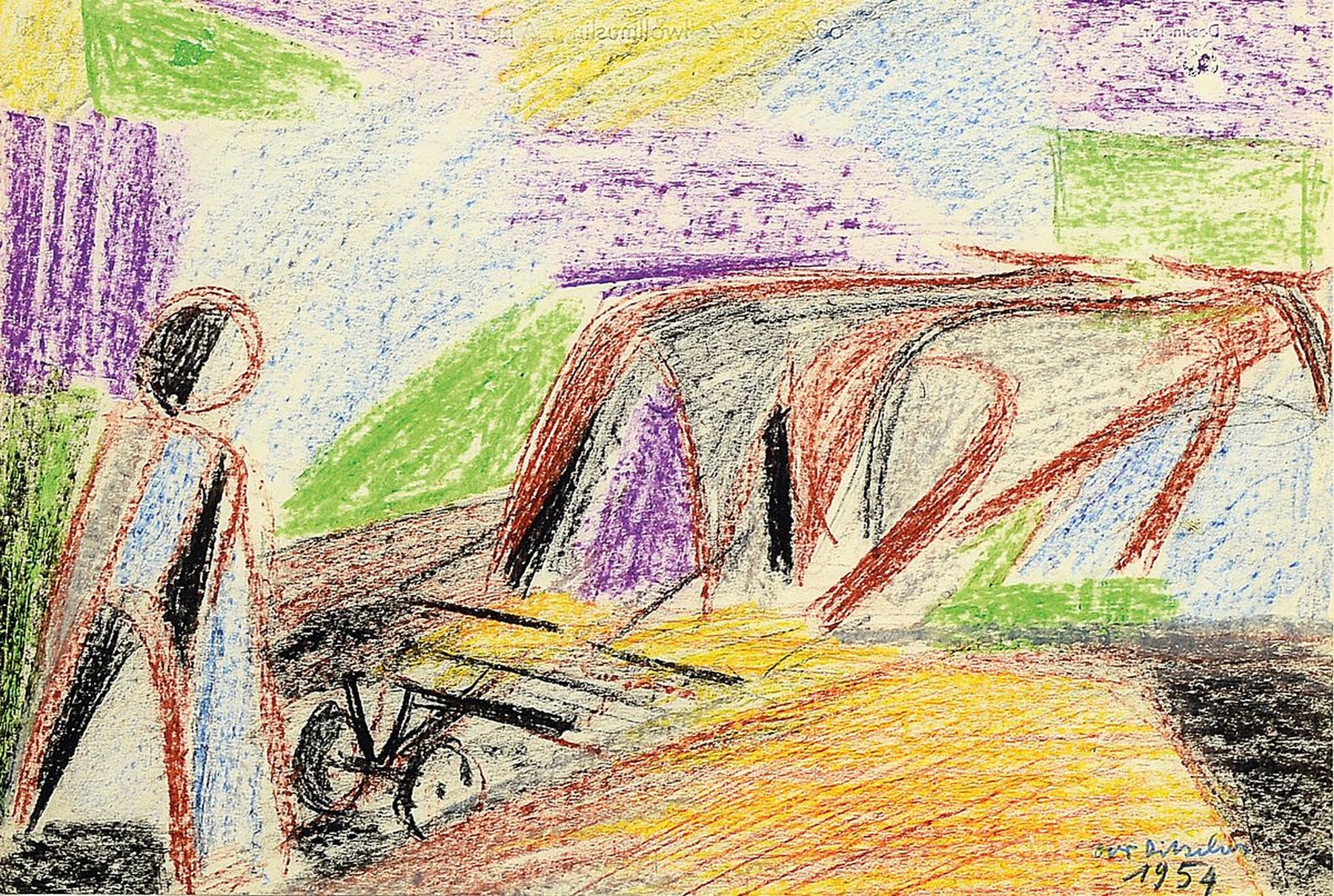 Otto Ditscher, 1904 Neuhofen - 1987 ebenda, Bauer mit Pflug, Buntstiftzeichnung auf Papier, signiert und datiert 1954, 19.5 x 29 cm, PP., unter Glas, Rahmen