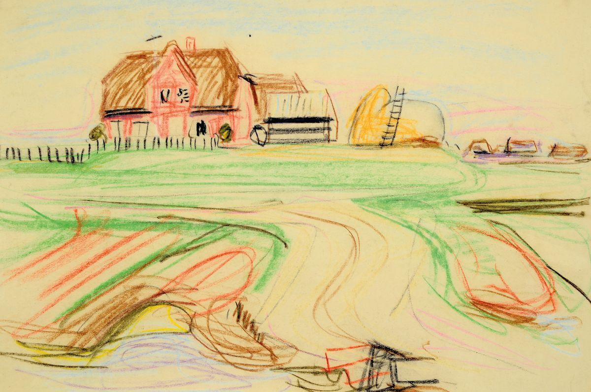 Erich Hartmann, 1886 - 1974, Bauernhof, farbige Kreidezeichnung auf Papier, auf der