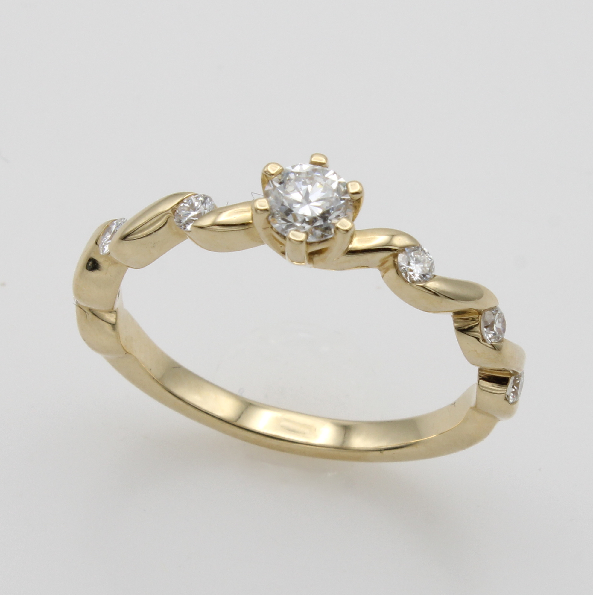 Ring mit Brillanten, GG 585/000, Mittelsteinin Krappenf. ca. 0.30 ct, 6 Besatzbrill. seitl. gef. zus. ca. 0.20 ct Weiß/si, RW ca. 56 Schätzpreis: 2250, - EUR