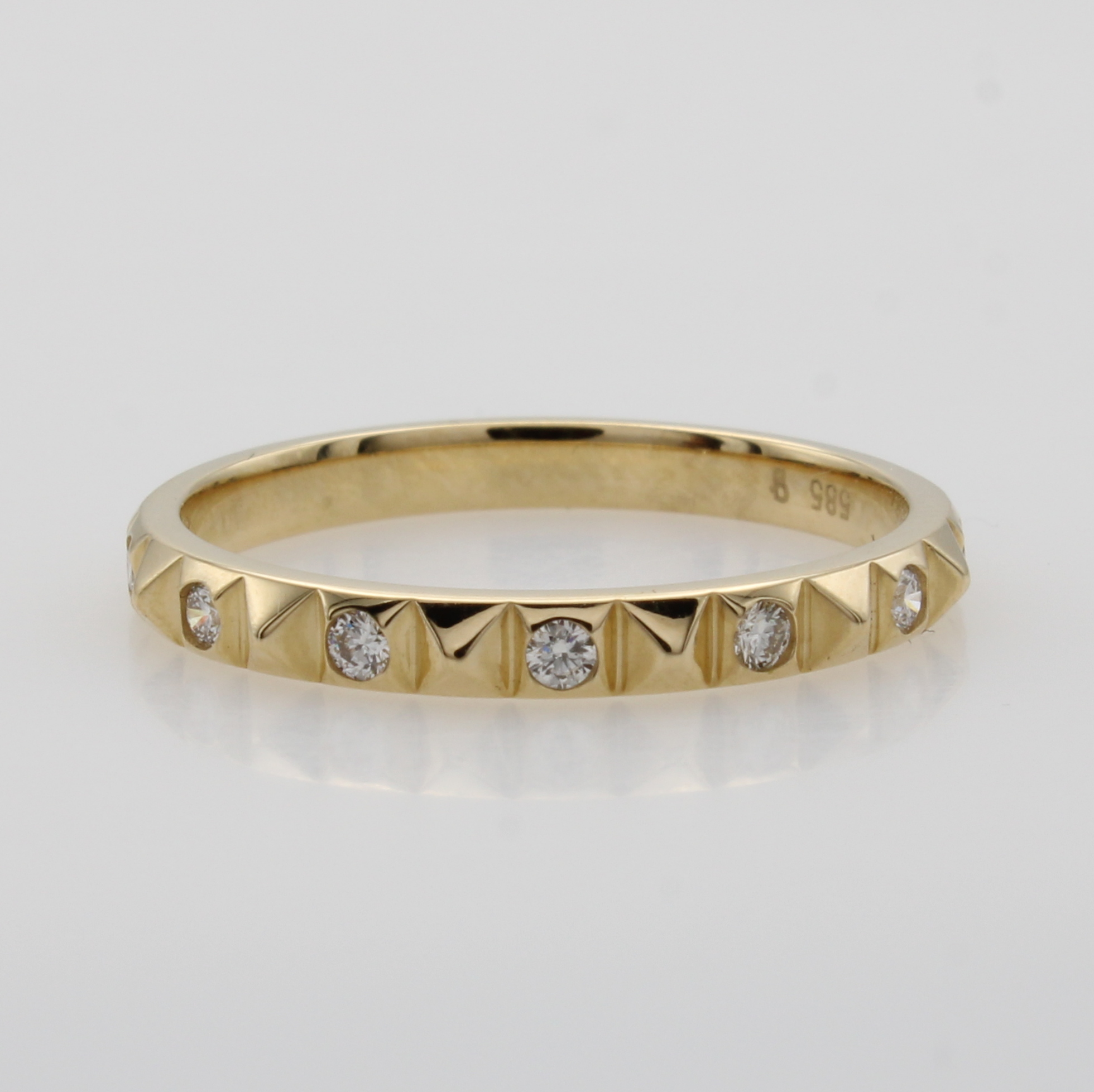 Ring mit Brillanten, GG 585/000, Ringschienez.T. pyramidenf., 7 Brill. zus. ca. 0.15 ct Weiß/si, RW ca. 56 Schätzpreis: 1150, - EUR