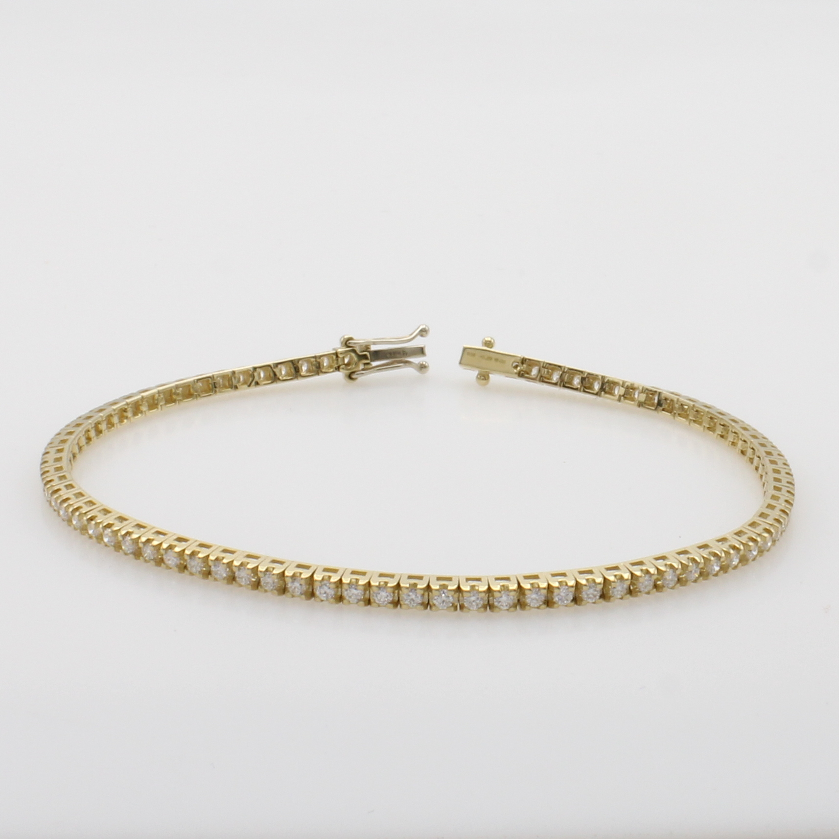 Rivierarmband mit Brillanten, GG 585/000, 79 Brill. in Krappenf. zus. ca. 1.20 ct Weiß/ si, Kastenschl. mit Sicherheitsacht, L. ca. 18 cm Schätzpreis: 4700, - EUR