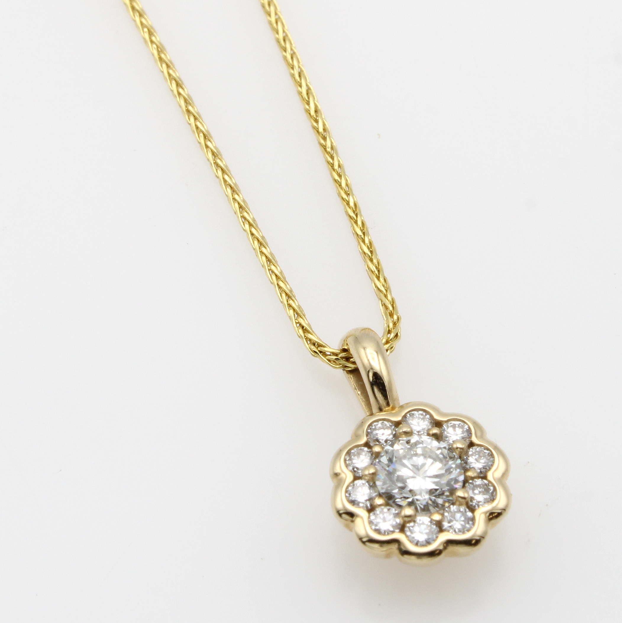 Anhänger "Blume" mit Brillanten an Kette, GG 585/000, 11 Brill. zus. ca. 0.30 ct Weiß/ si, L. ca. 45 cm Schätzpreis: 1550, - EUR