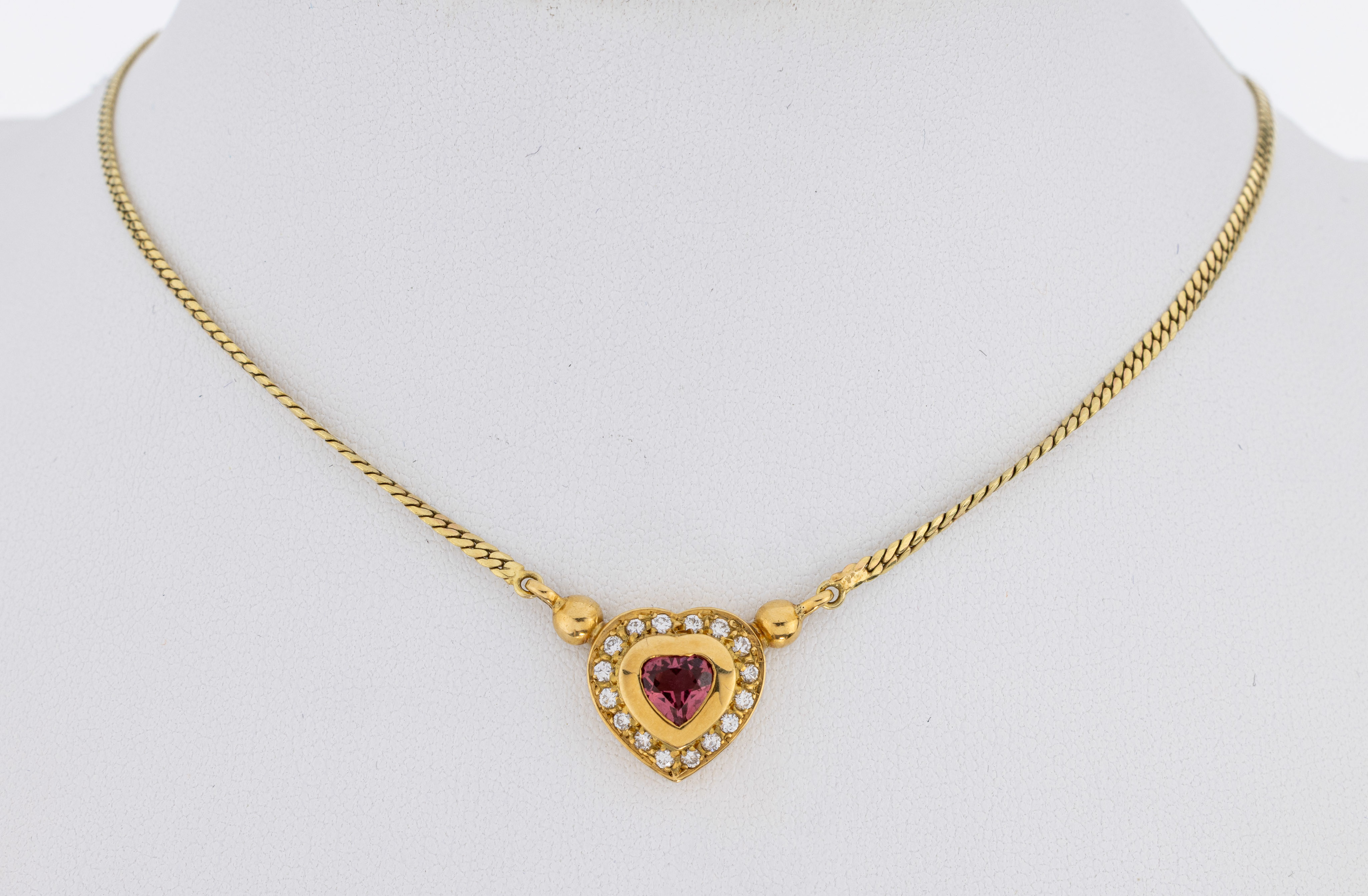 Rhodolith-Herz ca. 0.50 ct, 16 Brillanten zus. ca. 0.16 ct Weiß/si, L. ca. 40 cm,